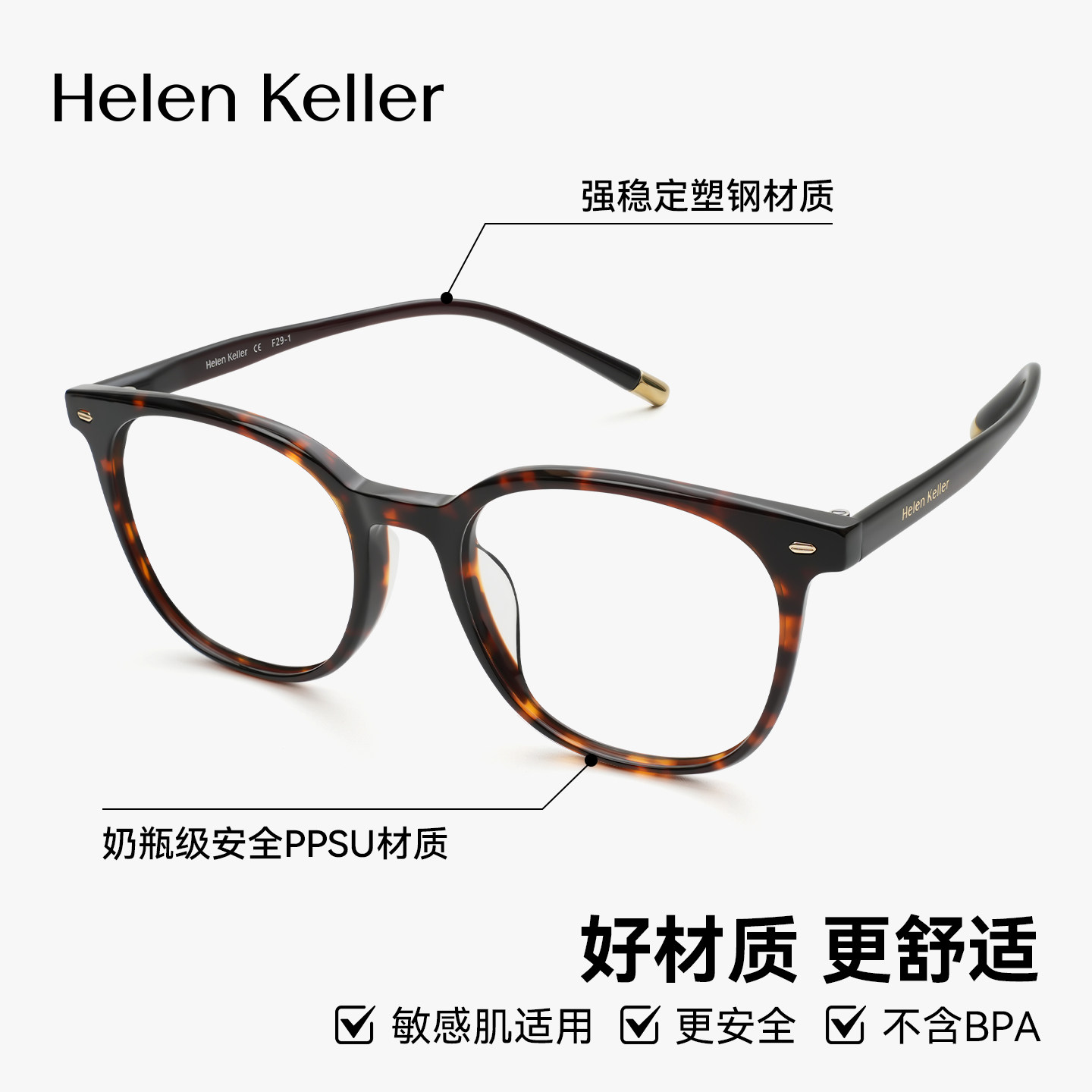 海伦凯勒新品经典百搭方框眼镜