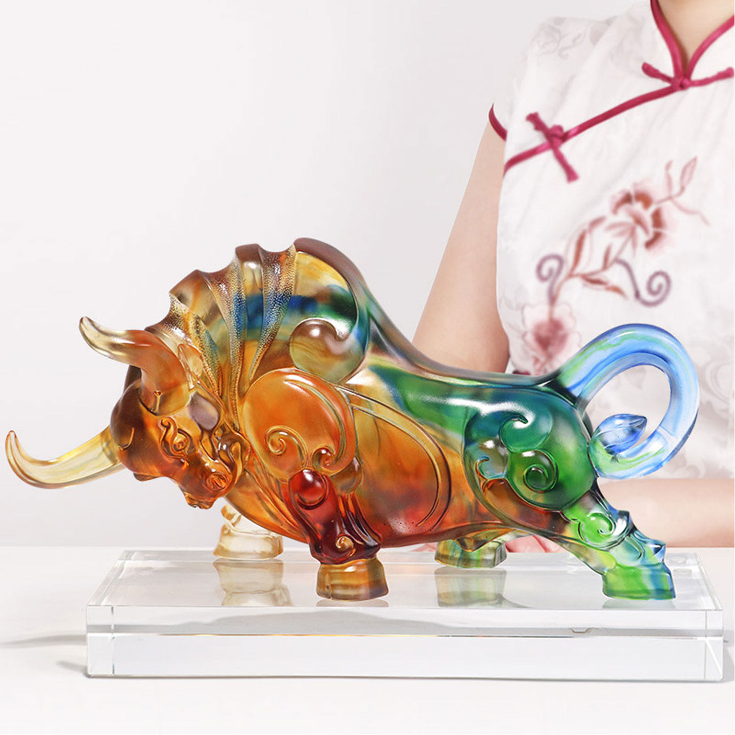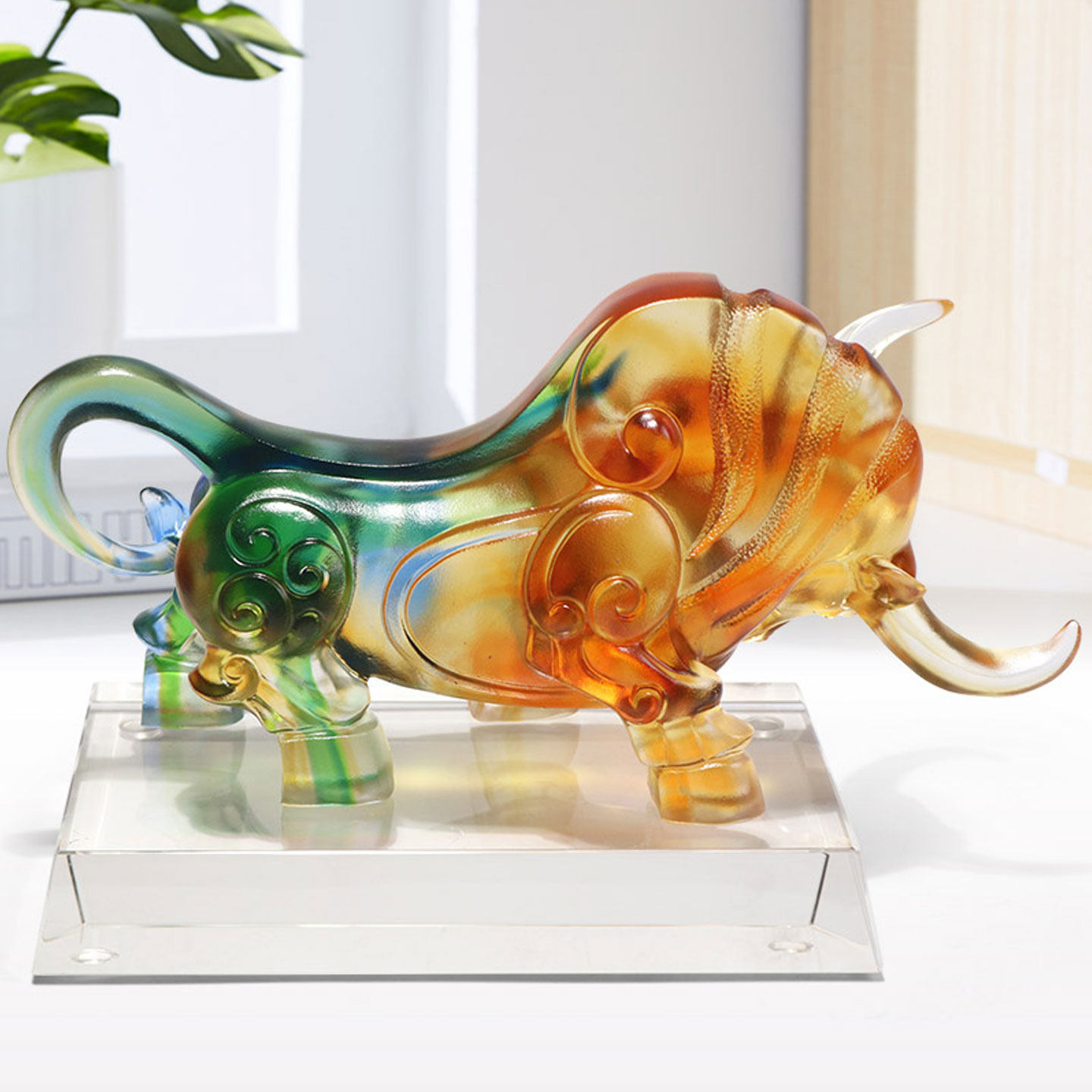 琉璃牛摆件领导办公室桌面股市招财牛气冲天摆设玄关装饰开业礼品