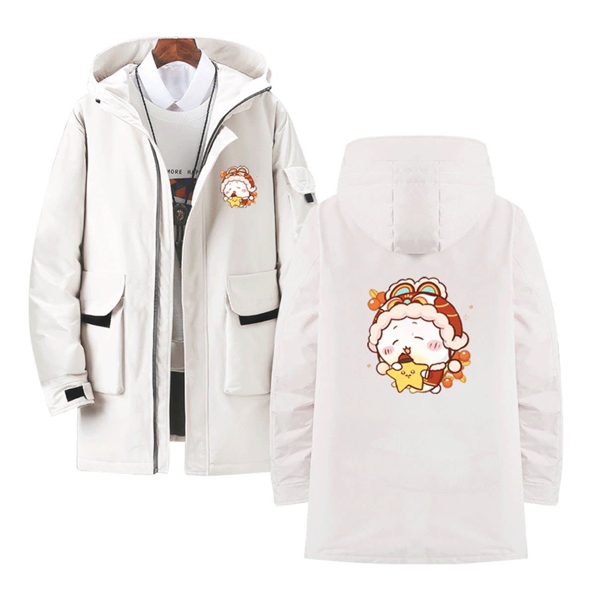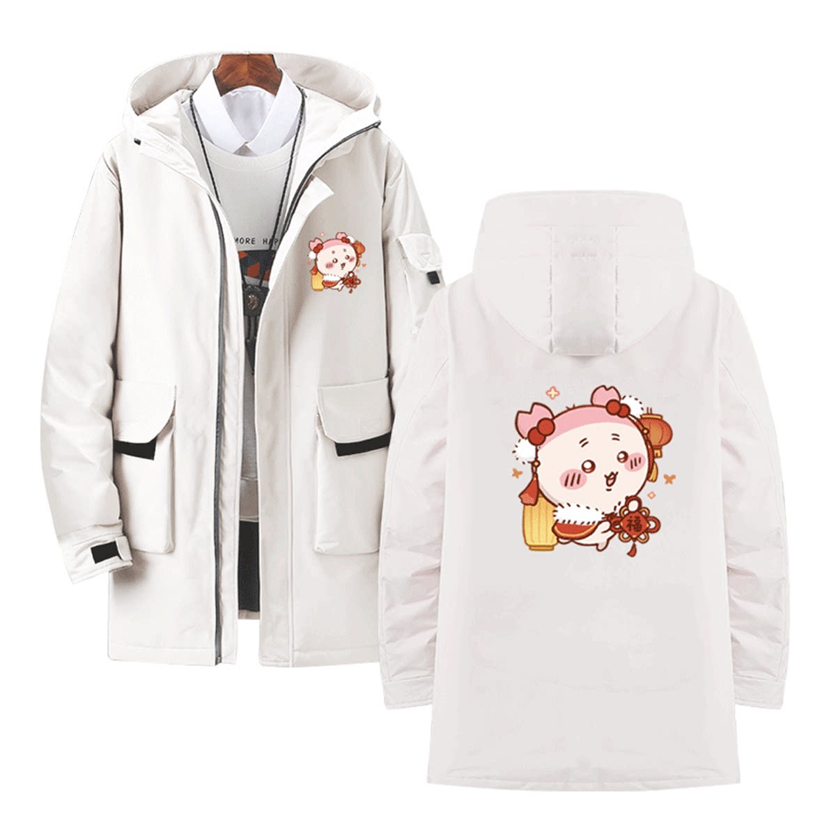 chiikawa吉伊卡哇哈奇乌萨奇小八周边男女可定制中长款休闲羽绒服