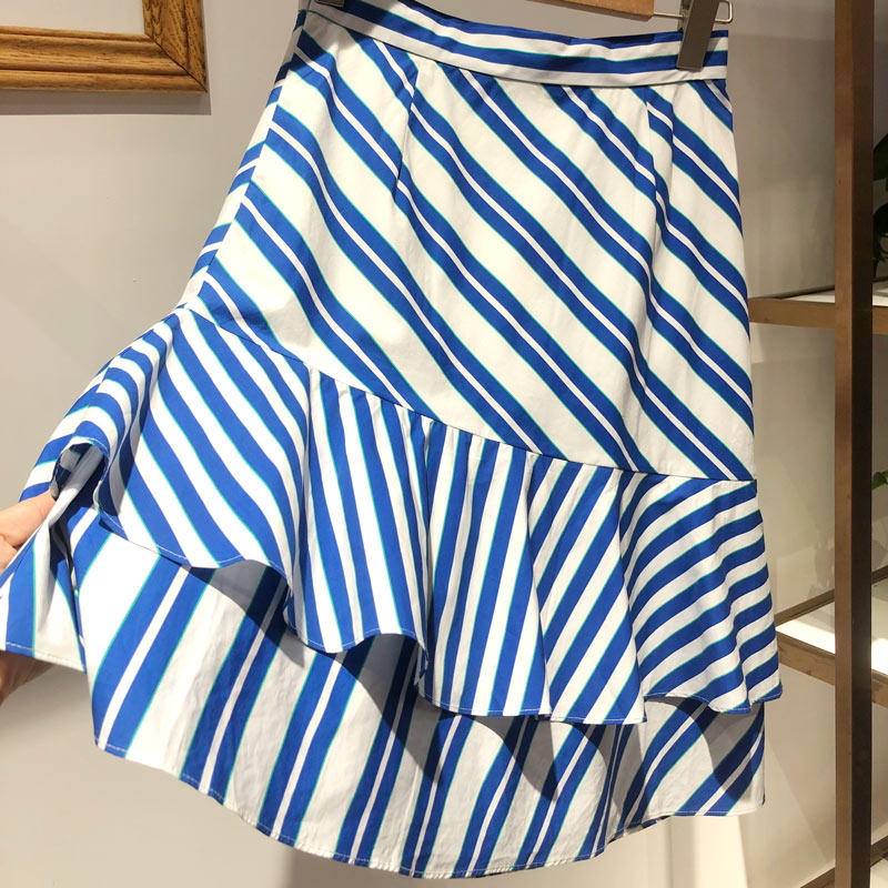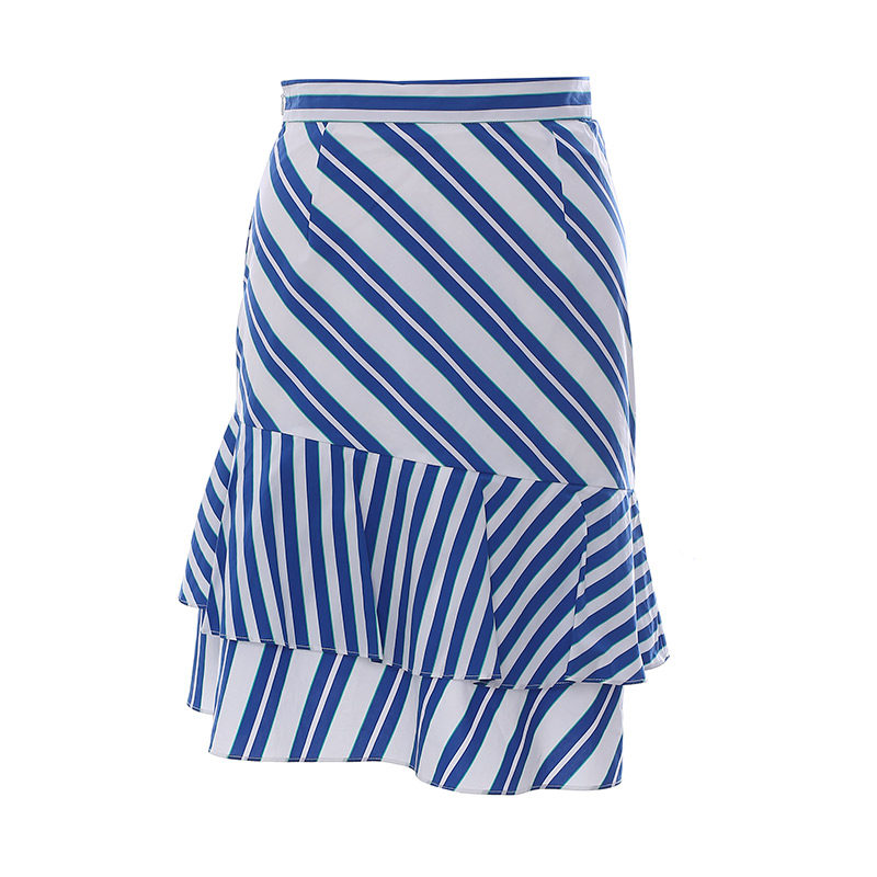 季候风通勤淑女纯棉短裙自然腰条纹拼接荷叶边半身裙8291QG824