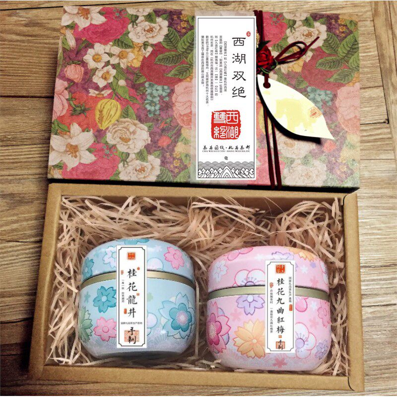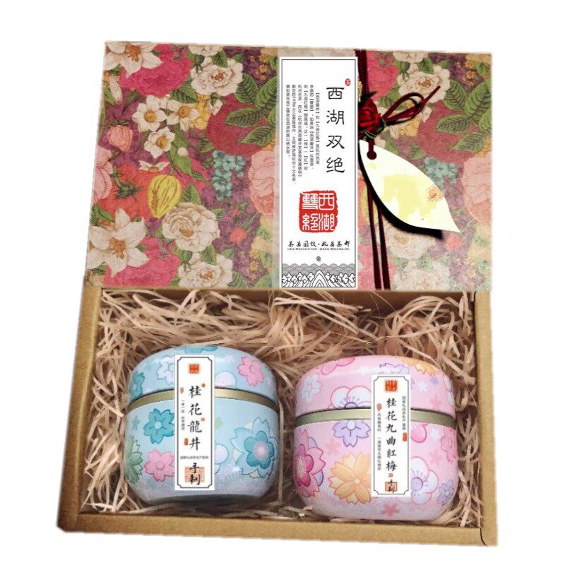 杭州特产西湖双绝龙井桂花绿茶50g九曲红梅桂花红茶50g茶叶礼盒