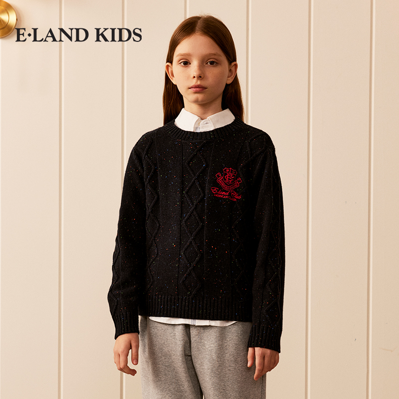 eland kids衣恋童装男童女童毛衣25年春秋含绵羊毛复古彩点针织衫