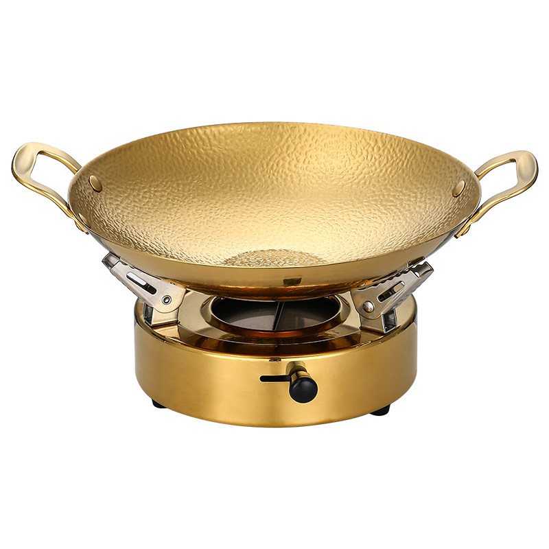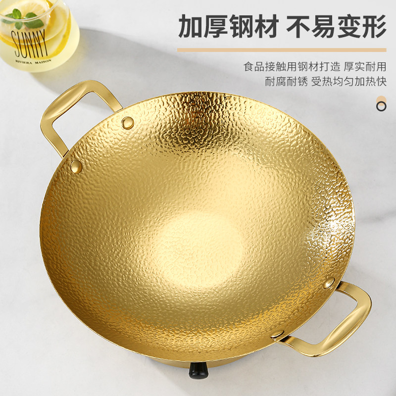 不锈钢干锅仔商用干锅锅炉饭店餐厅专用锤纹金色锅酒精炉干锅锅具
