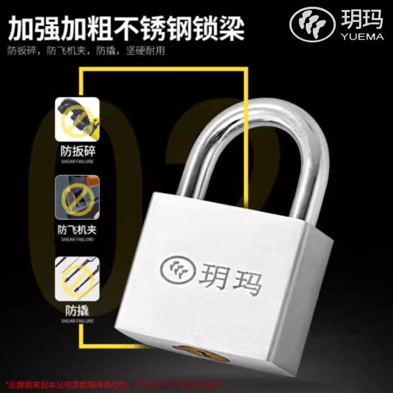 玥玛挂锁不锈钢防盗挂锁家用挂锁户外大门锁防水防锈C级叶片锁头
