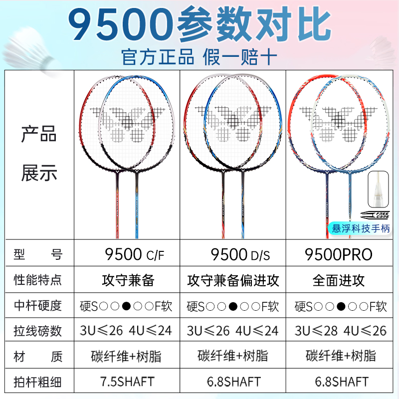 VICTOR胜利羽毛球拍正品旗舰店9500单拍威克多全碳素专业超轻拍子