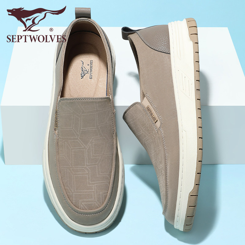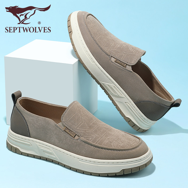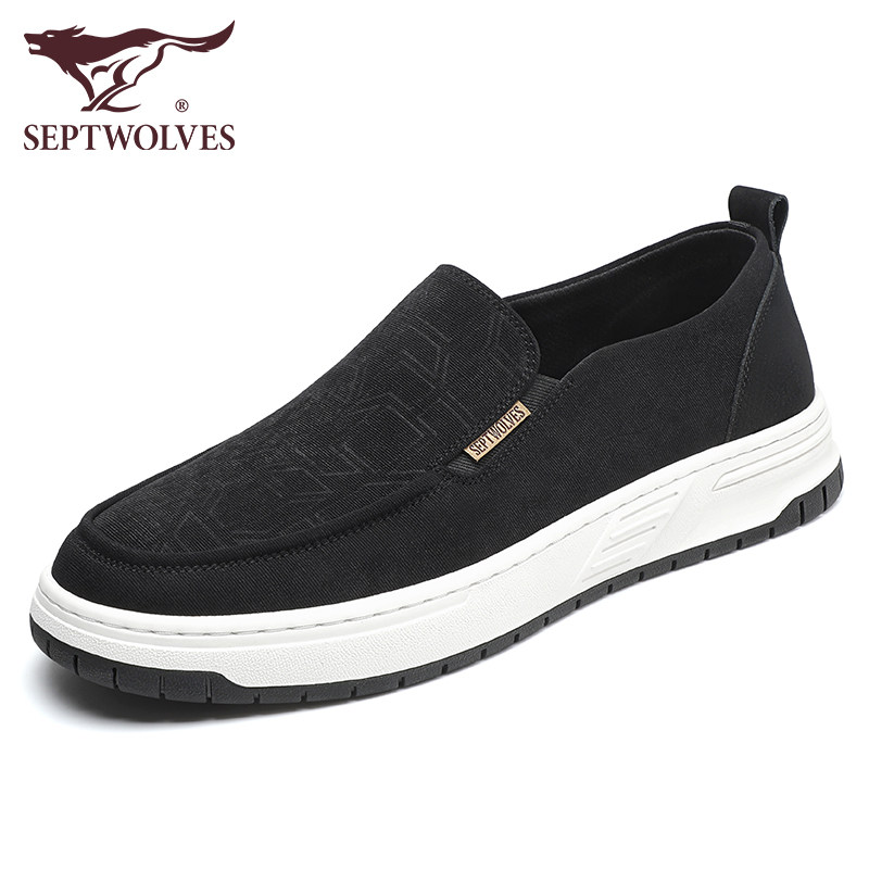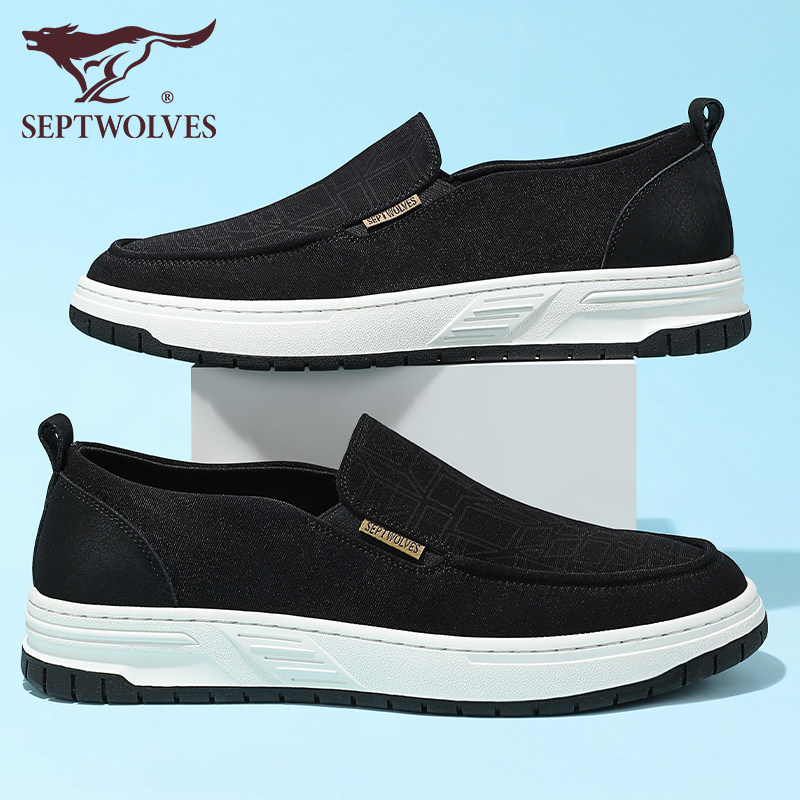 七匹狼一脚蹬鞋男夏季正品帆布鞋懒人黑色平底休闲鞋男士透气布鞋