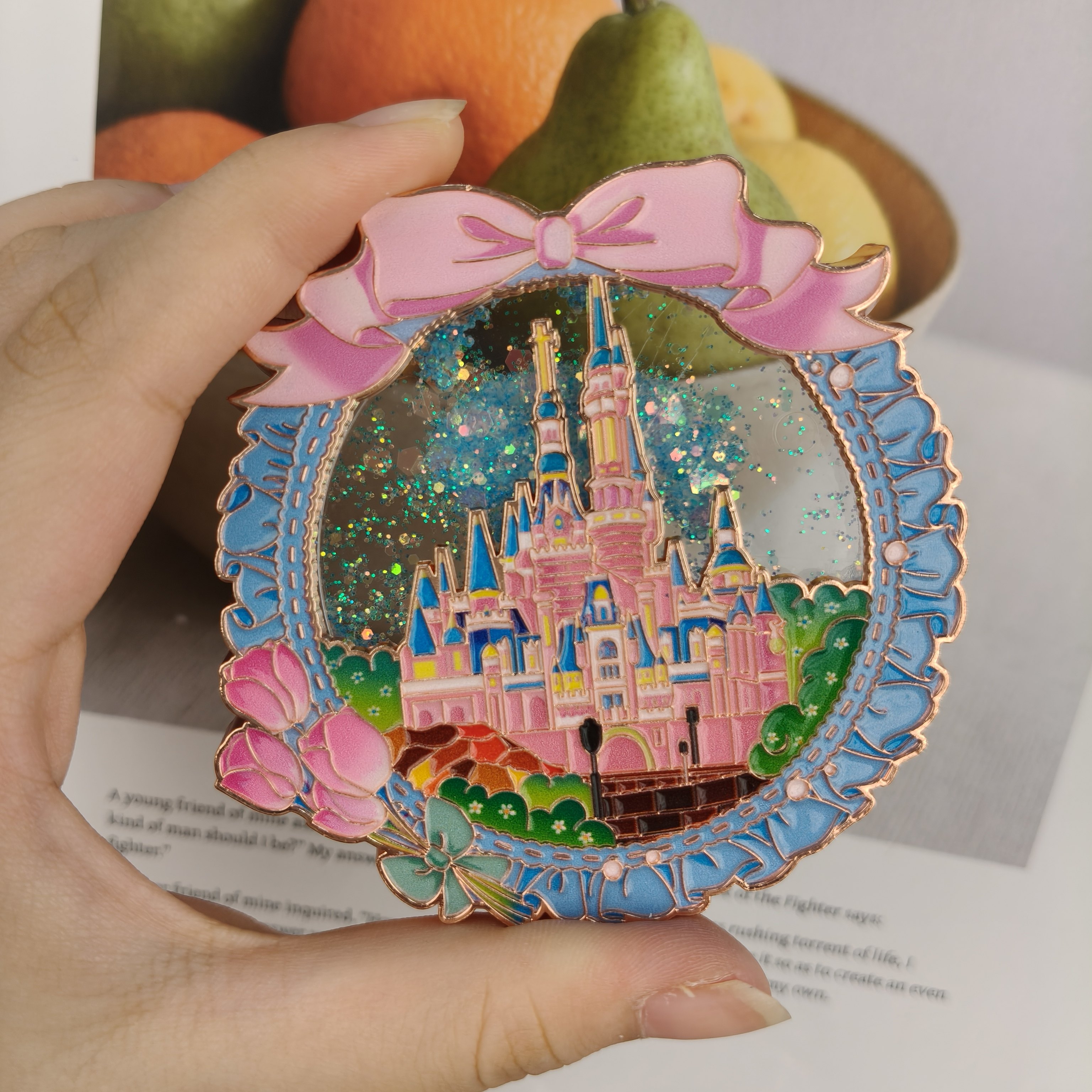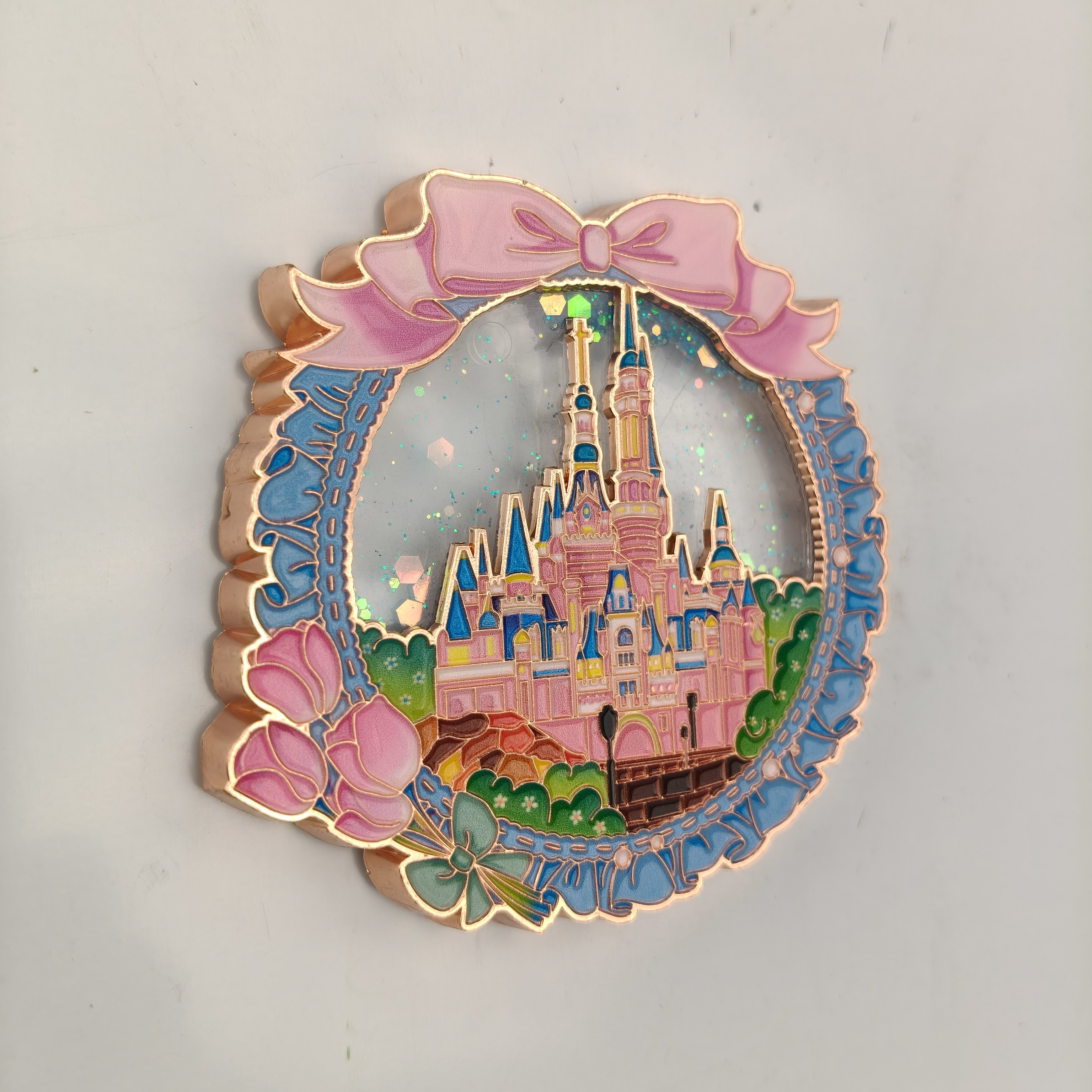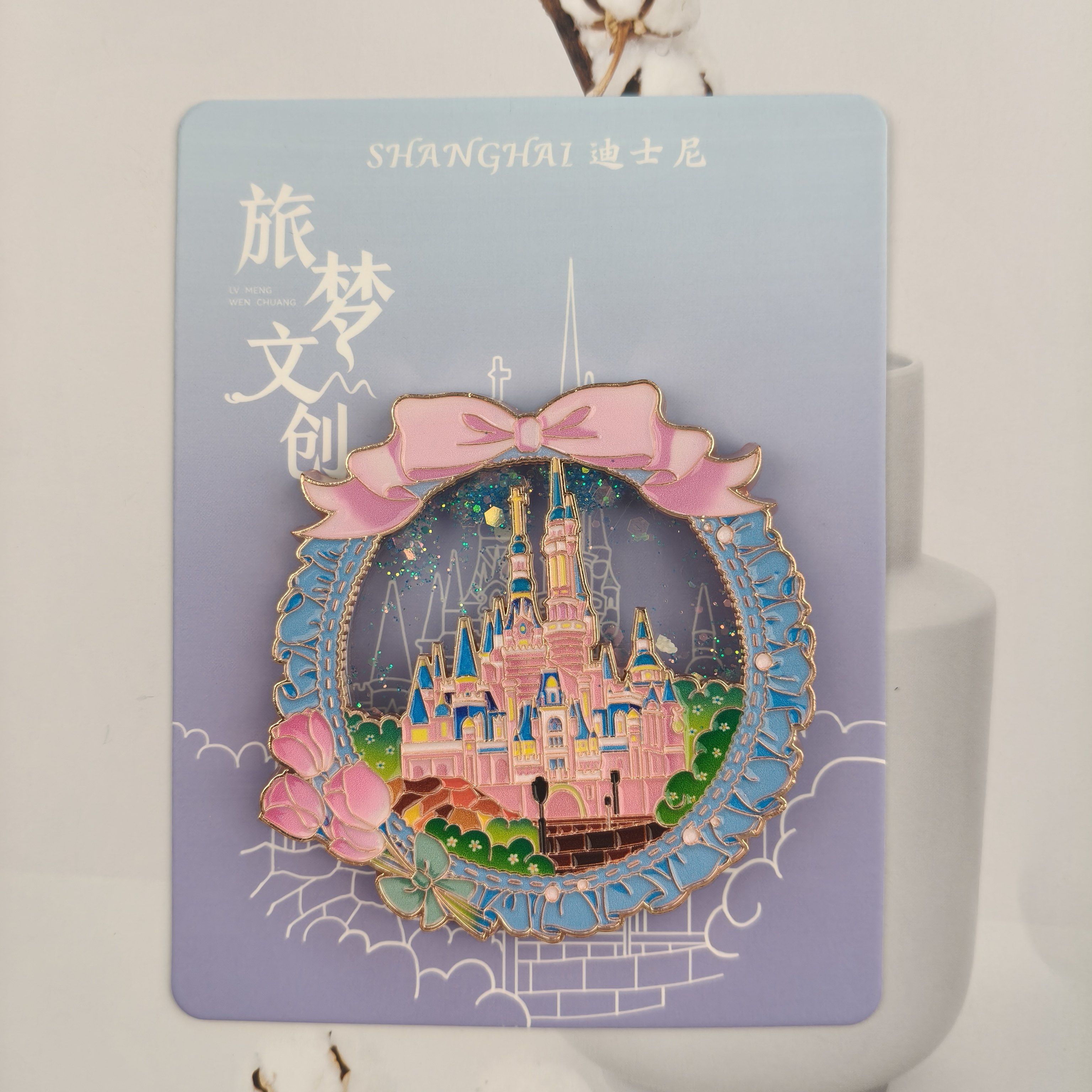 【上海】金属流沙冰箱贴上海迪士尼城堡旅游纪念品文创冰箱贴蓝色