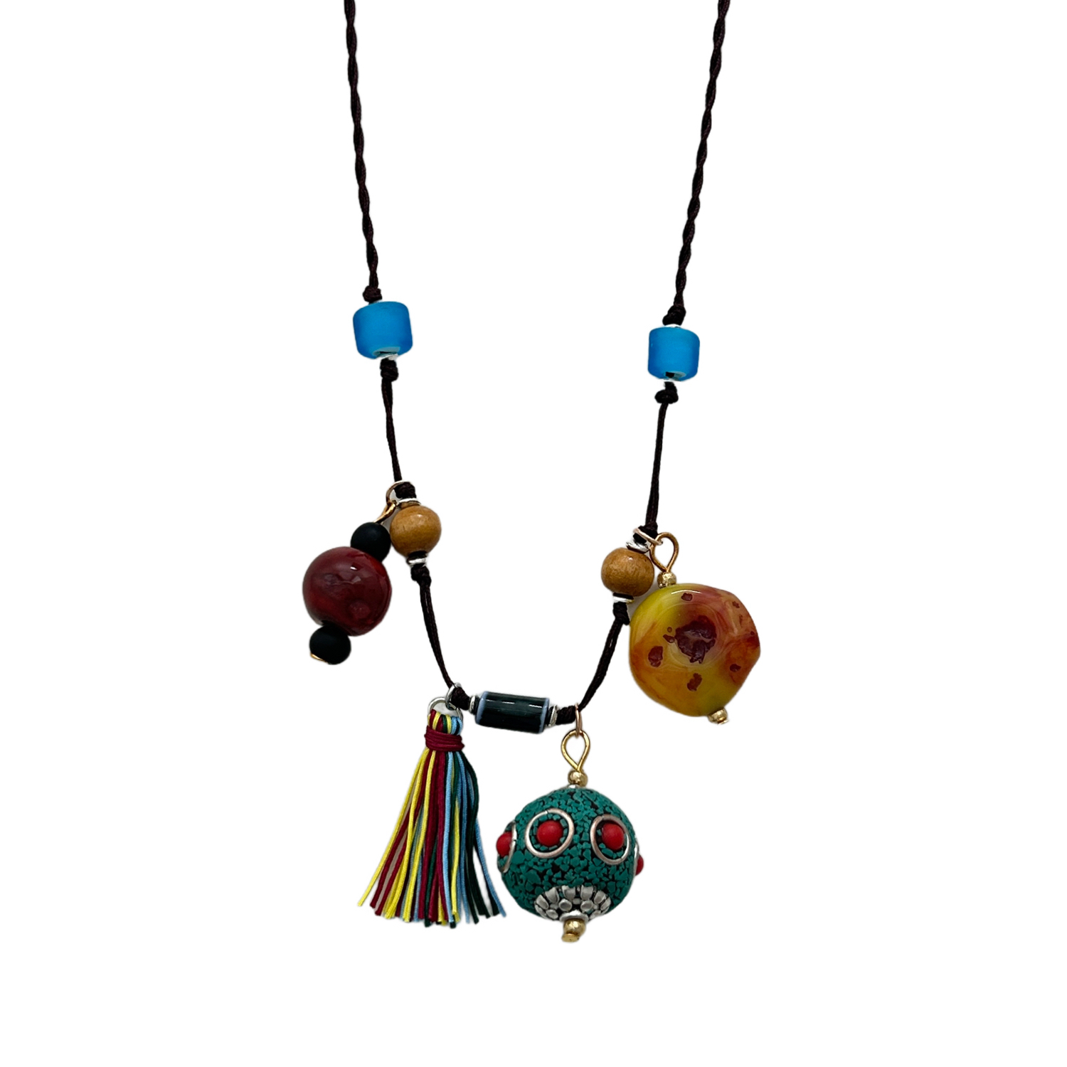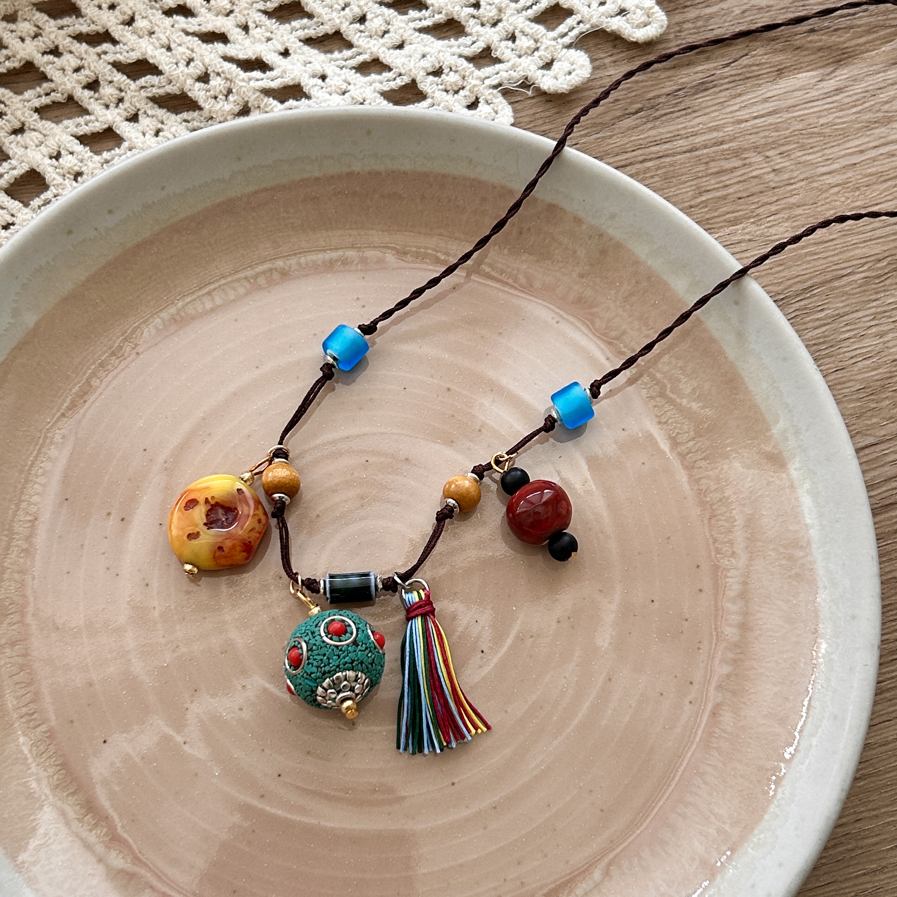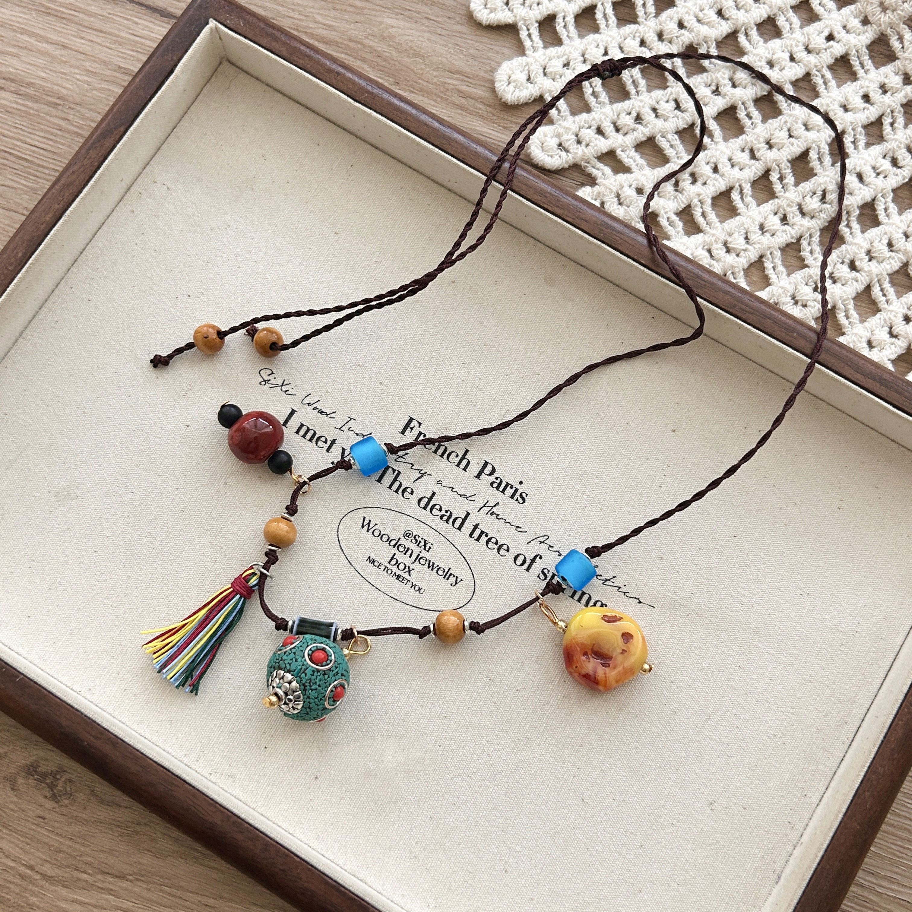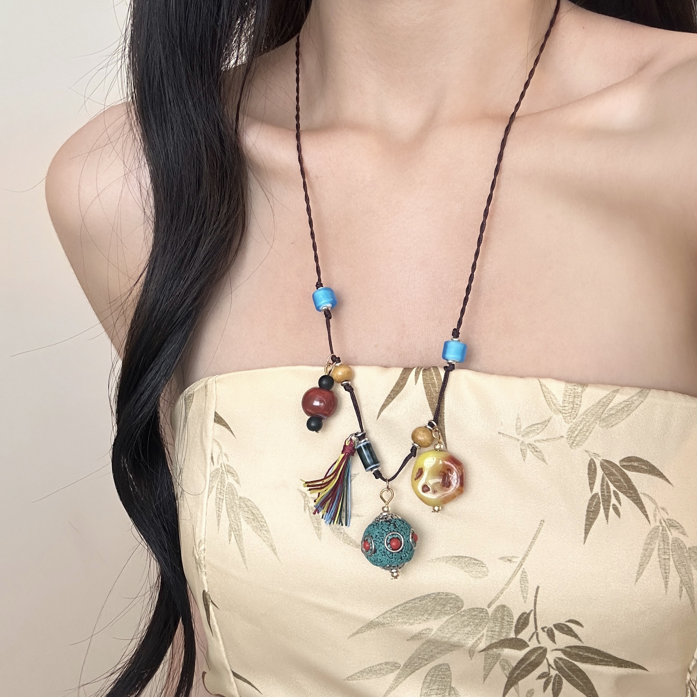 多巴胺陶瓷尼泊尔幸运球项链女新中式长款复古百搭毛衣链夏天配饰