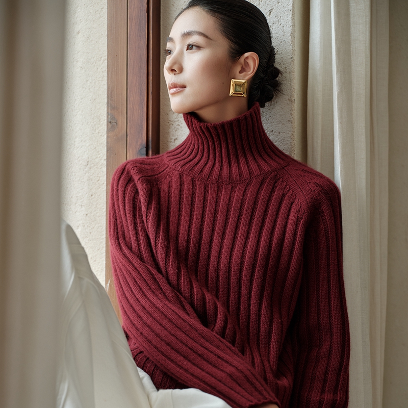 2025秋冬新款100%纯山羊绒衫女高领加厚宽松慵懒风针织打底衫毛衣