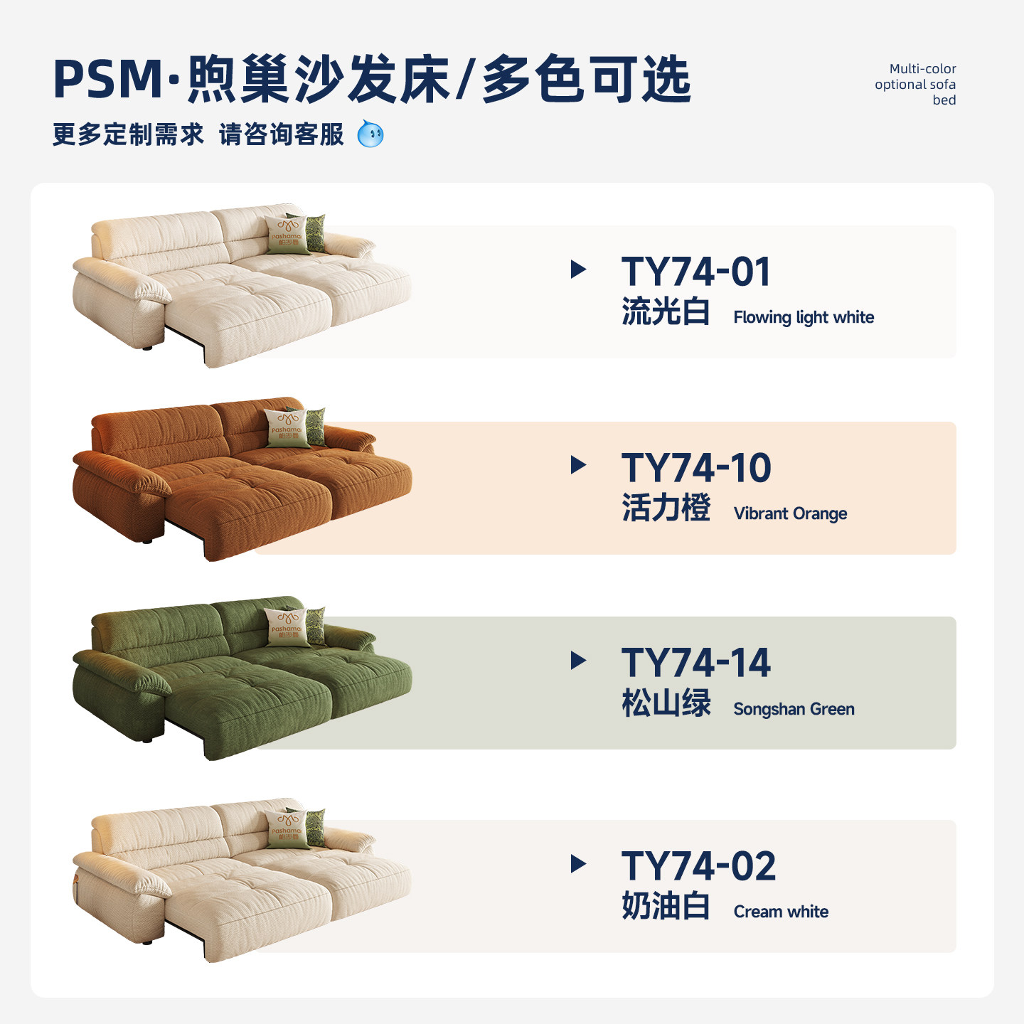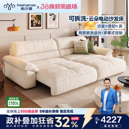 帕沙曼布艺可拆洗云朵电动沙发复古奶油客厅智能伸缩煦巢直排沙发