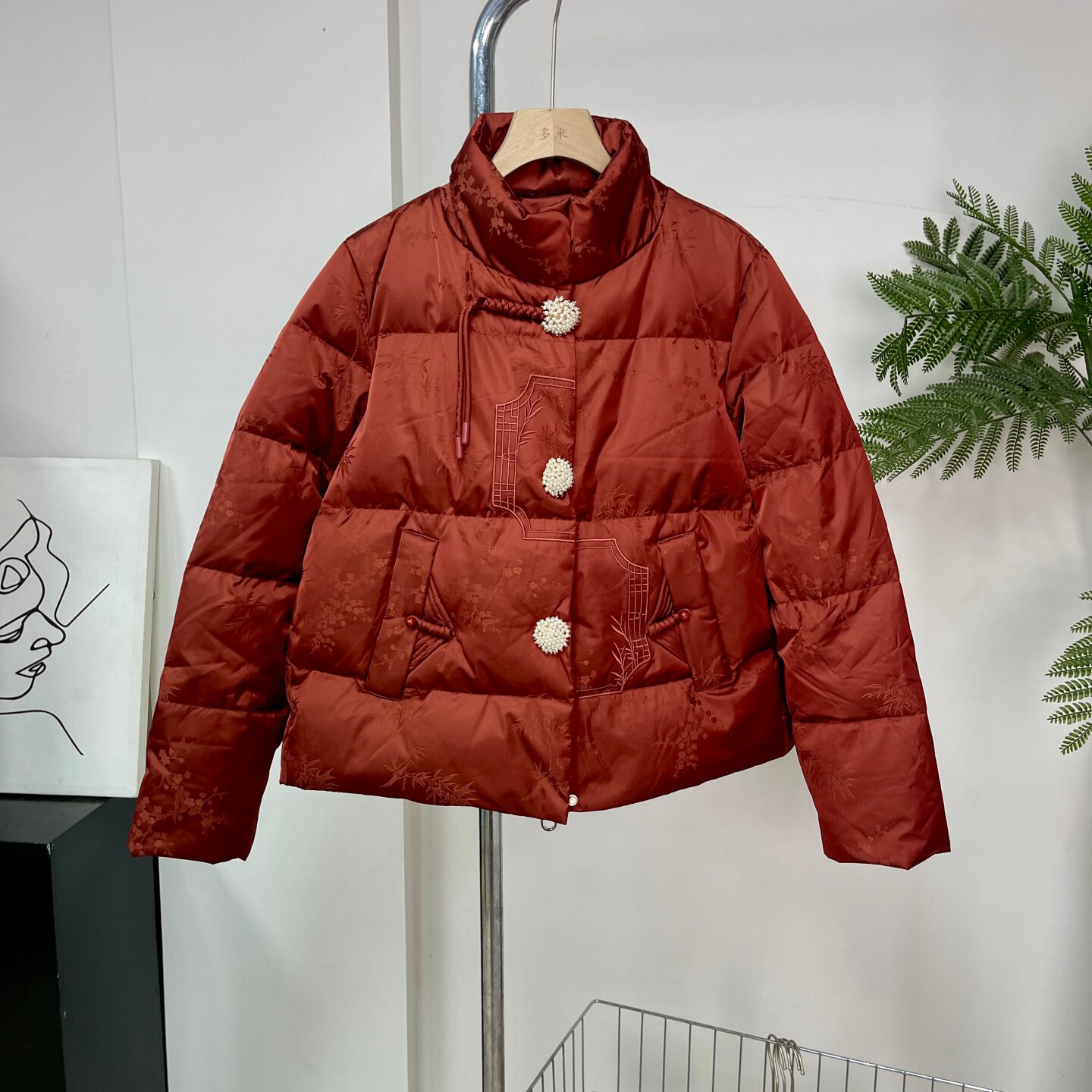 中年妈妈新中式红色羽绒服女冬季中老年短款立领保暖气质棉服外套