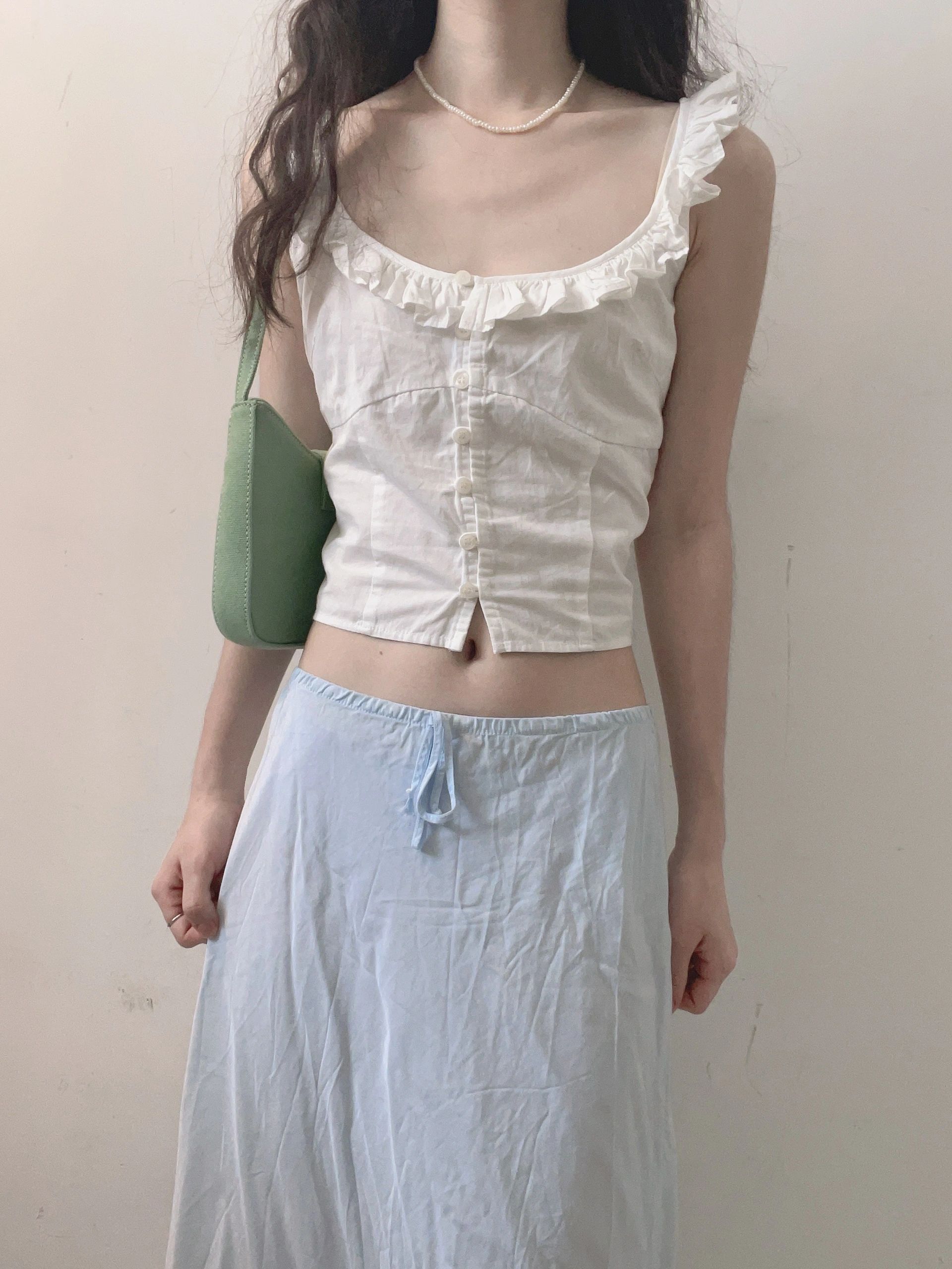 Brandy girl bm白色温柔甜妹荷叶边背心吊带女夏季小众无袖上衣