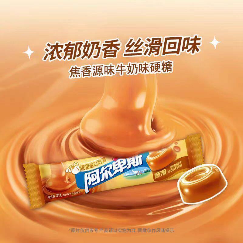阿尔卑斯奶糖焦香源味牛奶硬糖31g条装休闲出行儿童零食节日糖果