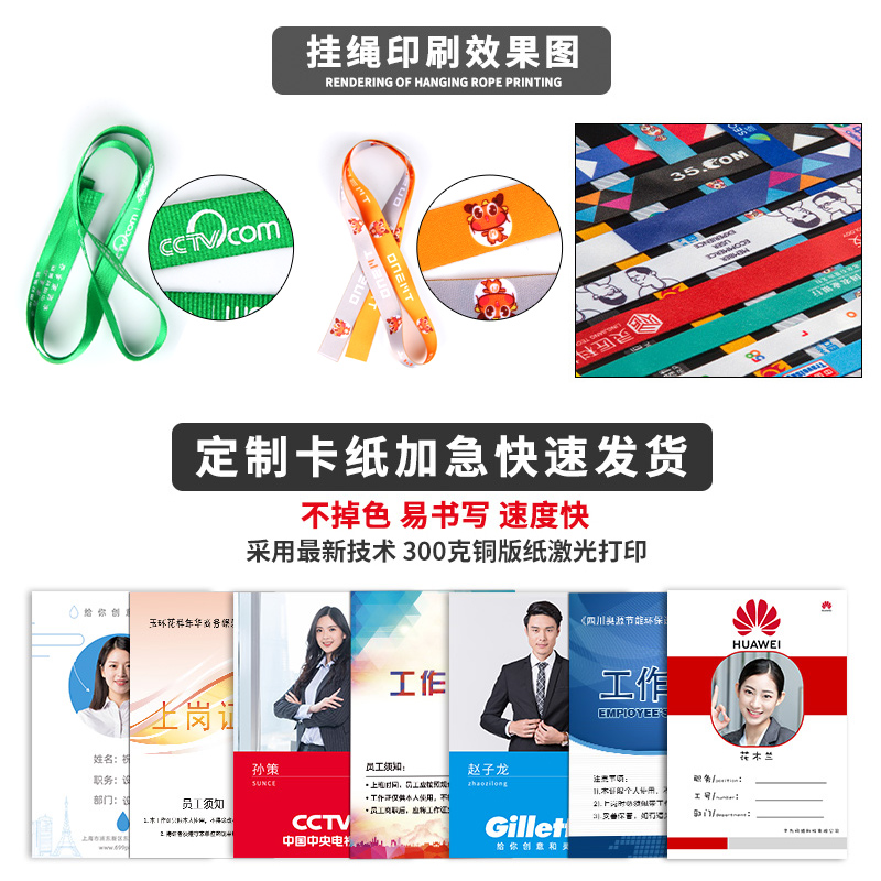 恒优高档工作牌卡套带挂绳胸卡员工工牌厂牌证件套双面透明门禁胸牌挂牌工作吊牌工作证定制
