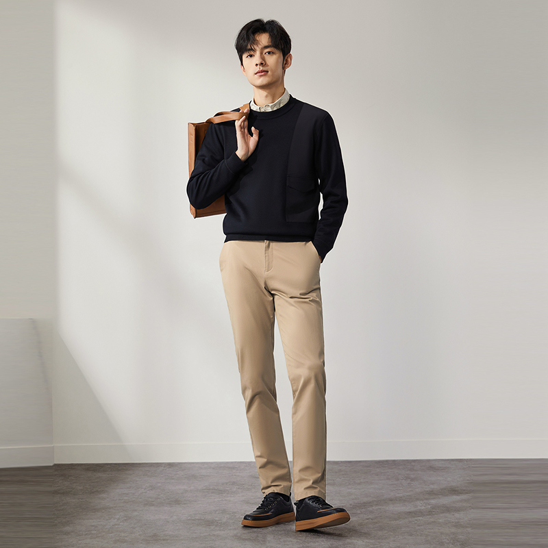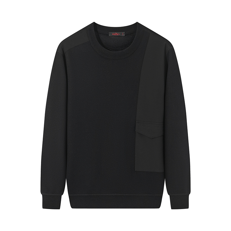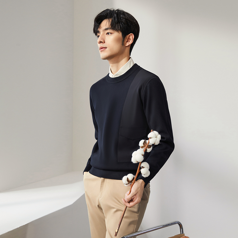 【加绒拼接】柒牌男士针织衫秋冬新品时尚休闲中青年厚款圆领毛衫
