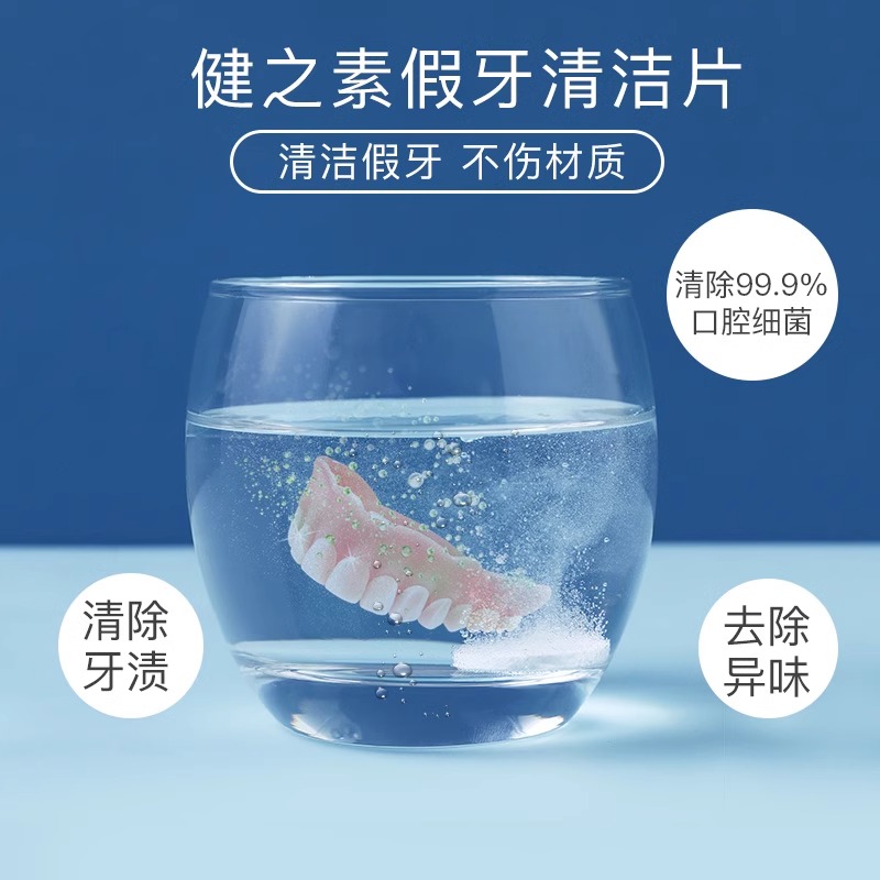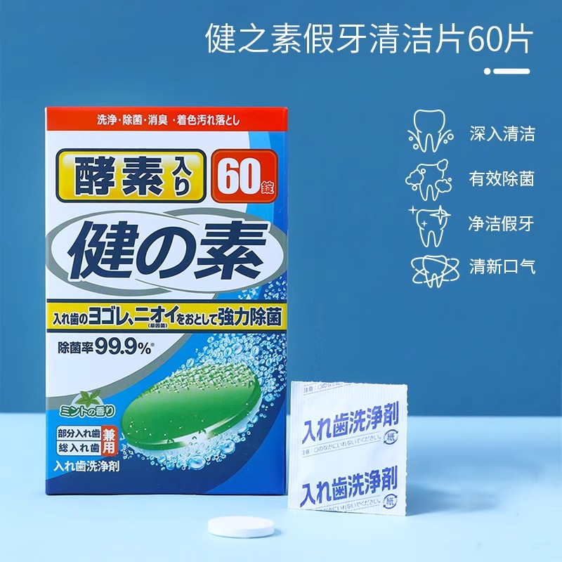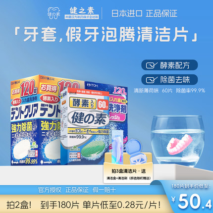 日本健之素假牙清洁片中老年全半口通用泡腾片牙套可用清洁剂液