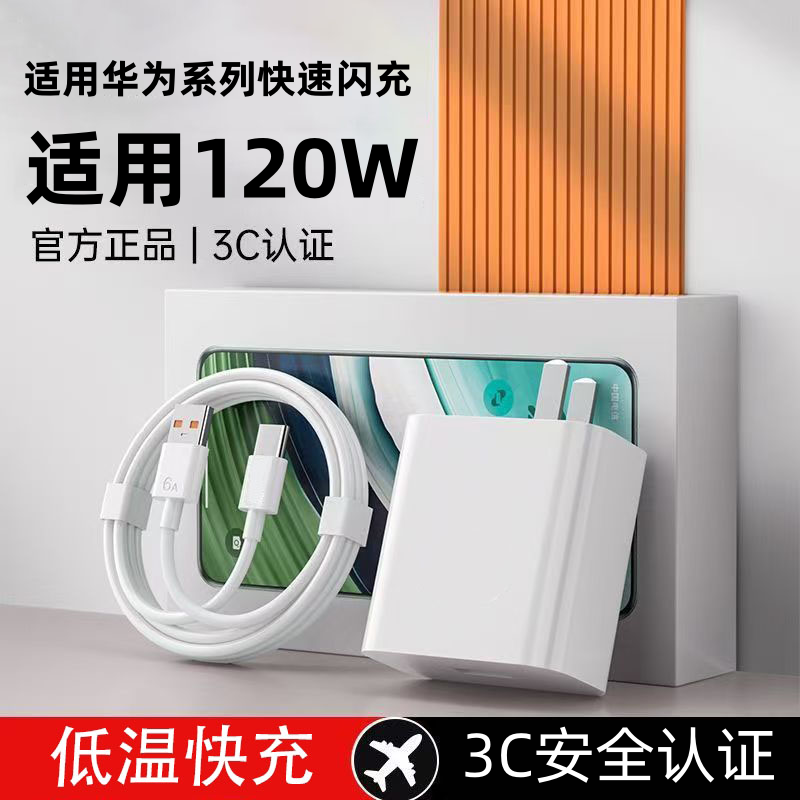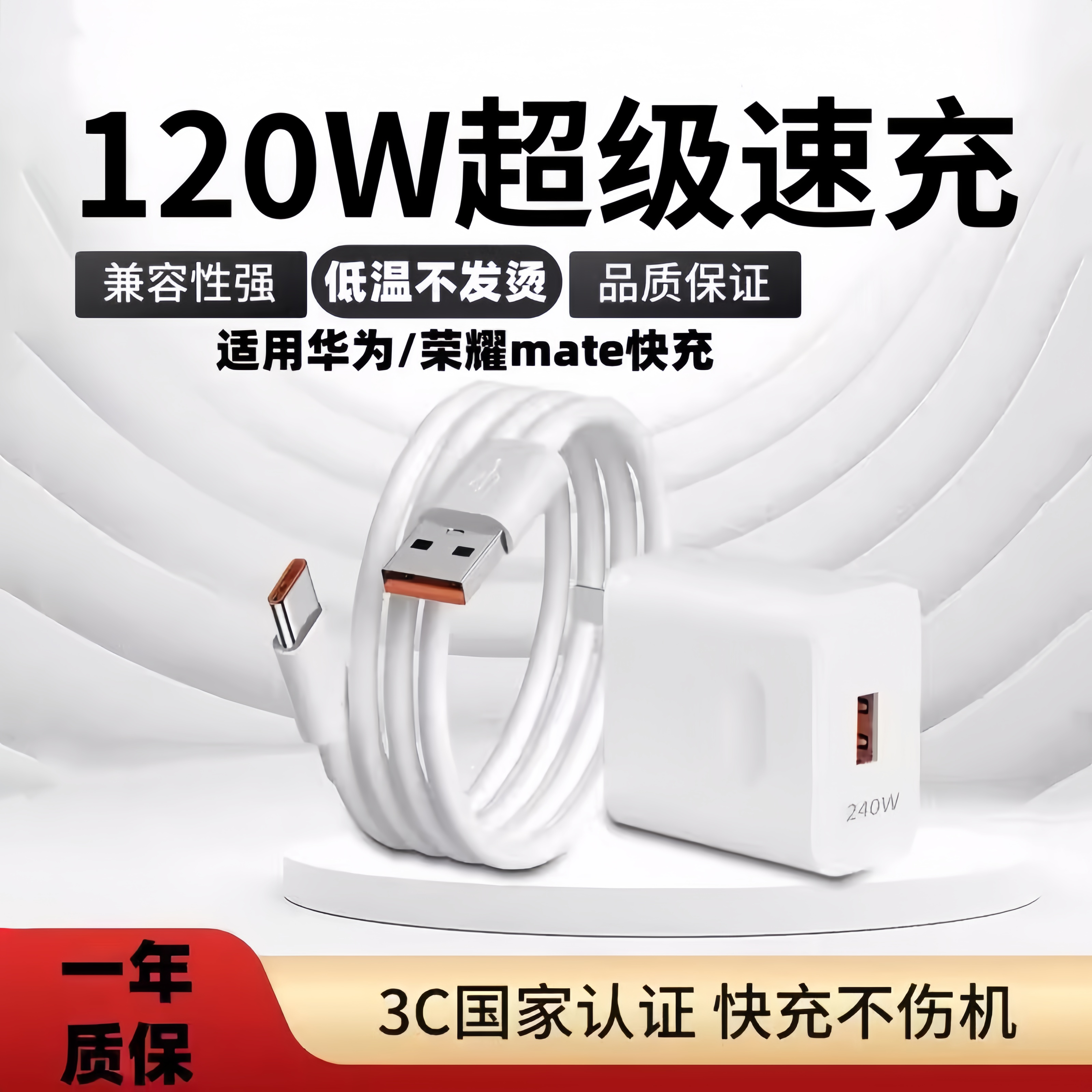 适用华为240W双口闪充头A+C便携充电器6A快充线双TypeC安卓数据线闪充P60/P50mate50/40/nova10快充线原套装