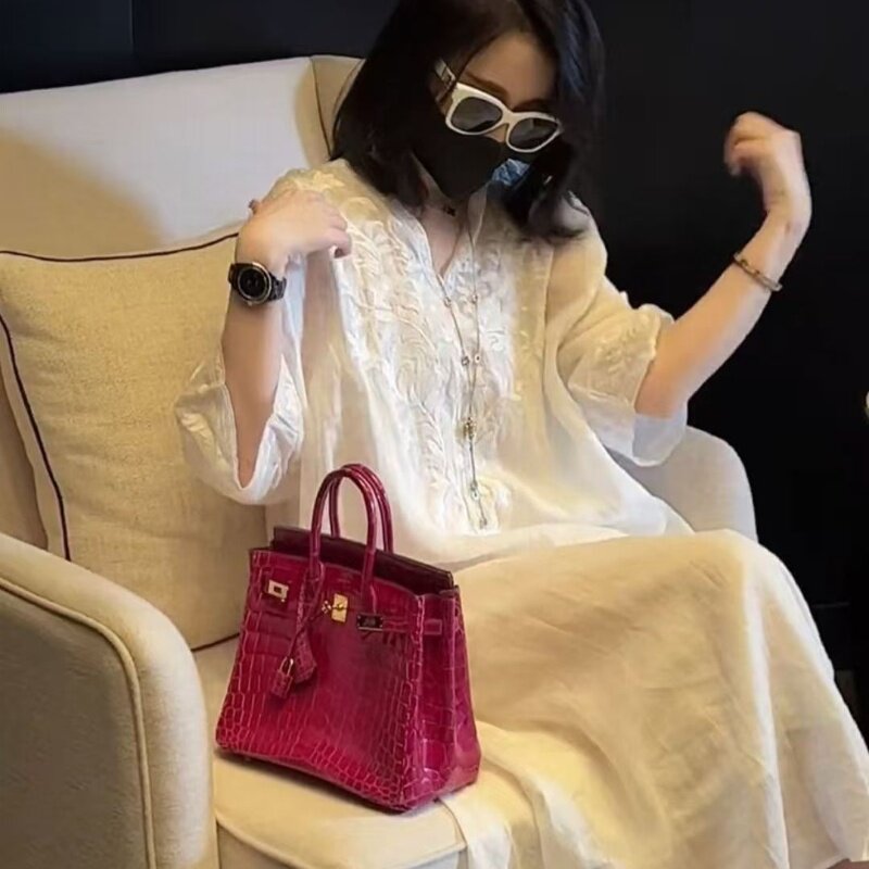 新中式国风刺绣苎麻连衣裙女2025夏季新款气质宽松休闲亚麻长裙子