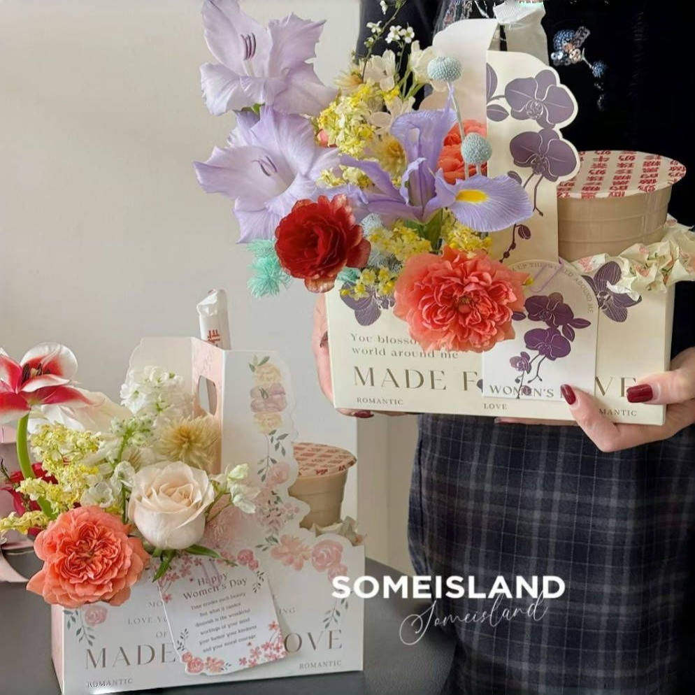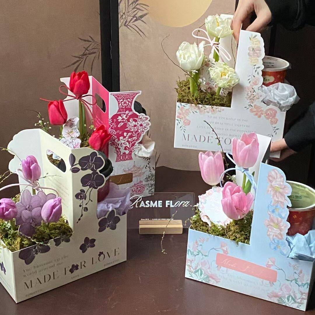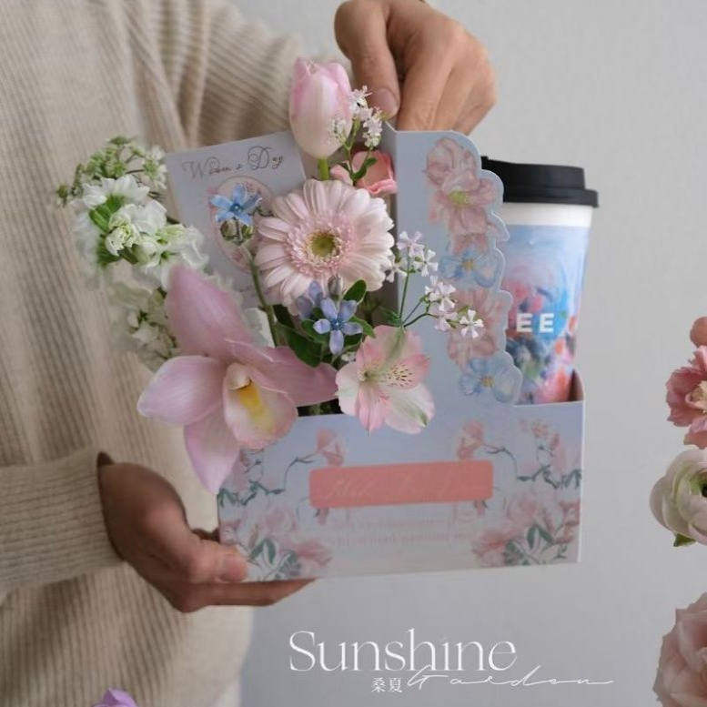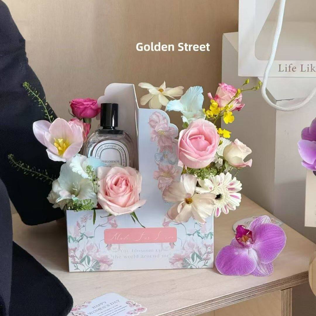 手提花盒圣诞节奶茶花盒咖啡鲜花手提袋diy插花篮鲜花包装礼盒