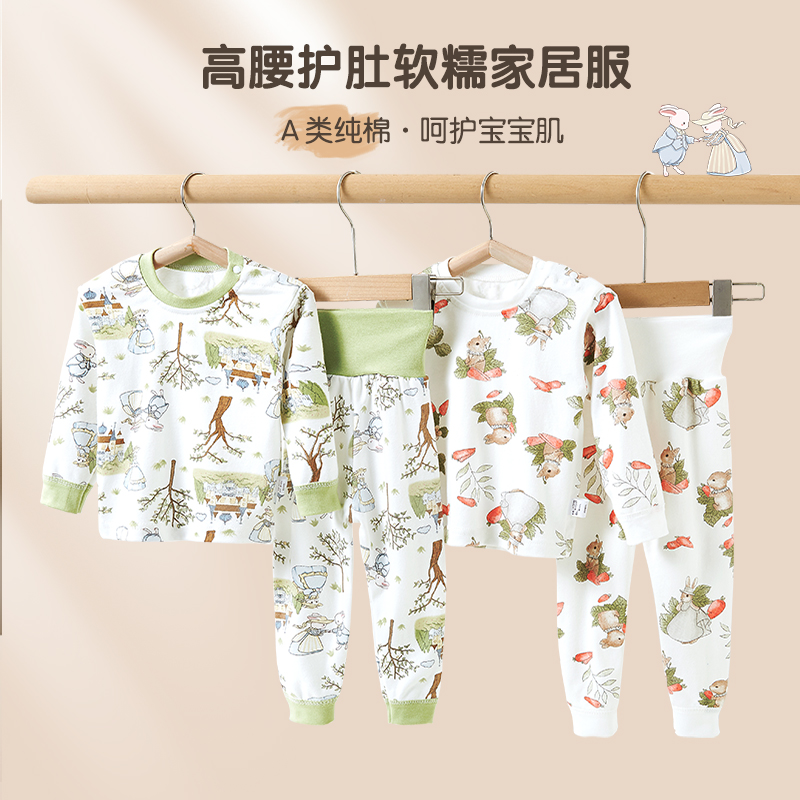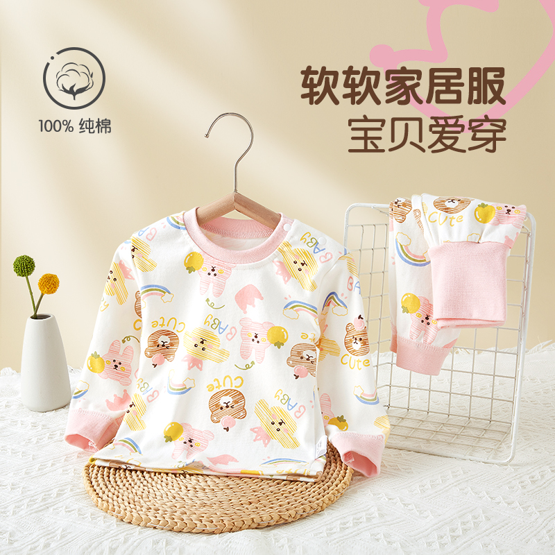 婴儿秋衣裤套装高腰护肚男女宝宝长袖保暖内衣分体睡衣卡通家居服