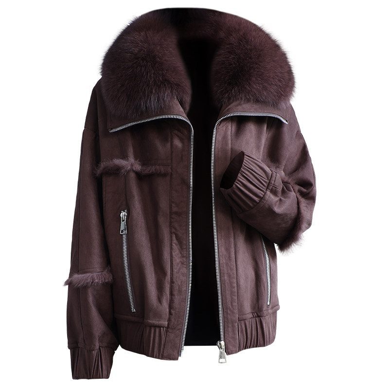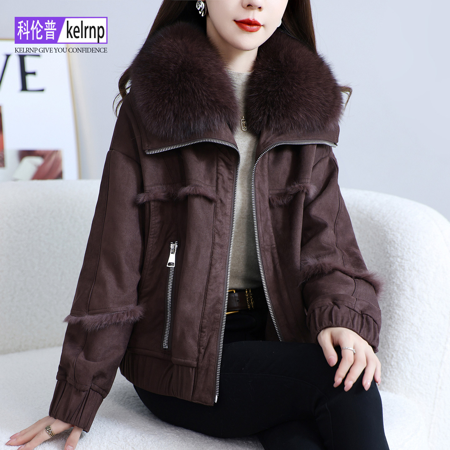 獭兔毛皮草外套女2025冬新短款正品牌原创狐狸毛领真皮毛一体大衣