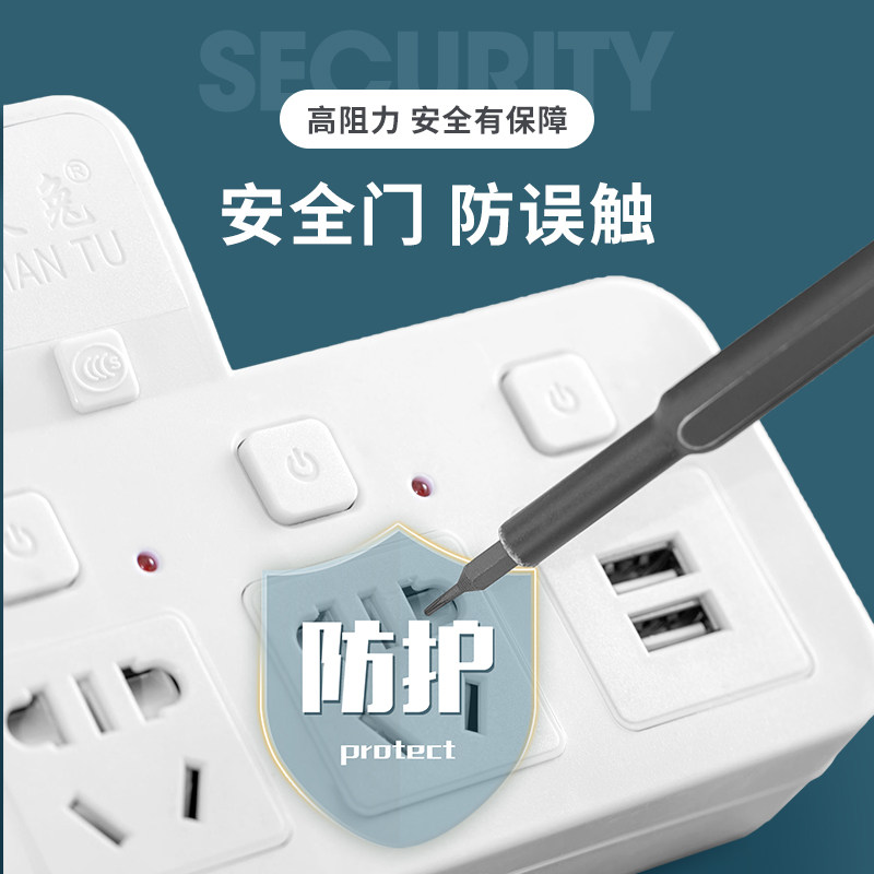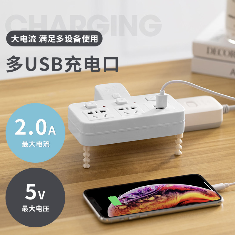 无线插座多功能转换器插头一转多孔插排带独立开关小夜灯USB插板
