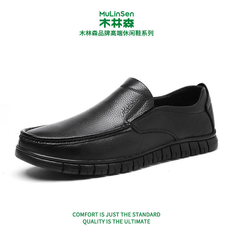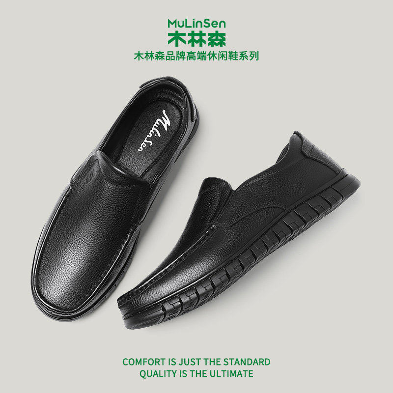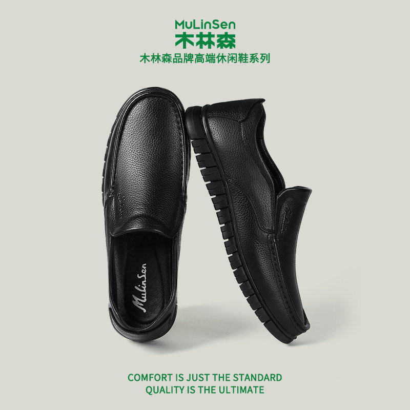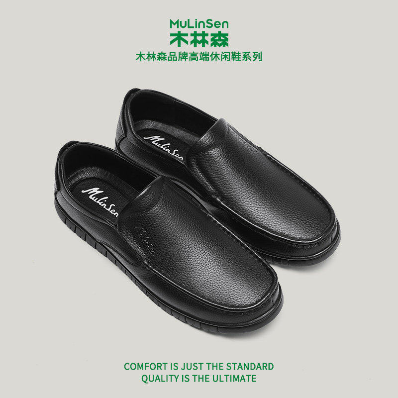 木林森豆豆鞋男春季休闲真皮商务正装一脚蹬乐福爸爸软底工作皮鞋