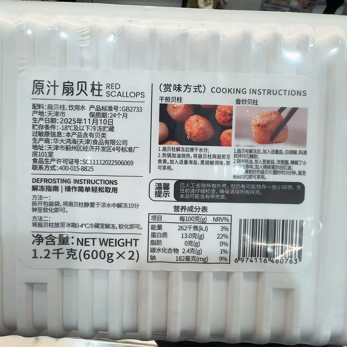 南京 山姆代购原汁扇贝柱1.2kg应季捕捞鲜活加工爆炒煲汤顺丰配送