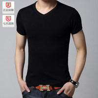 正品红胸鸟男士圆领短袖t恤V领半袖体恤衫修身纯色学生T恤紧身男