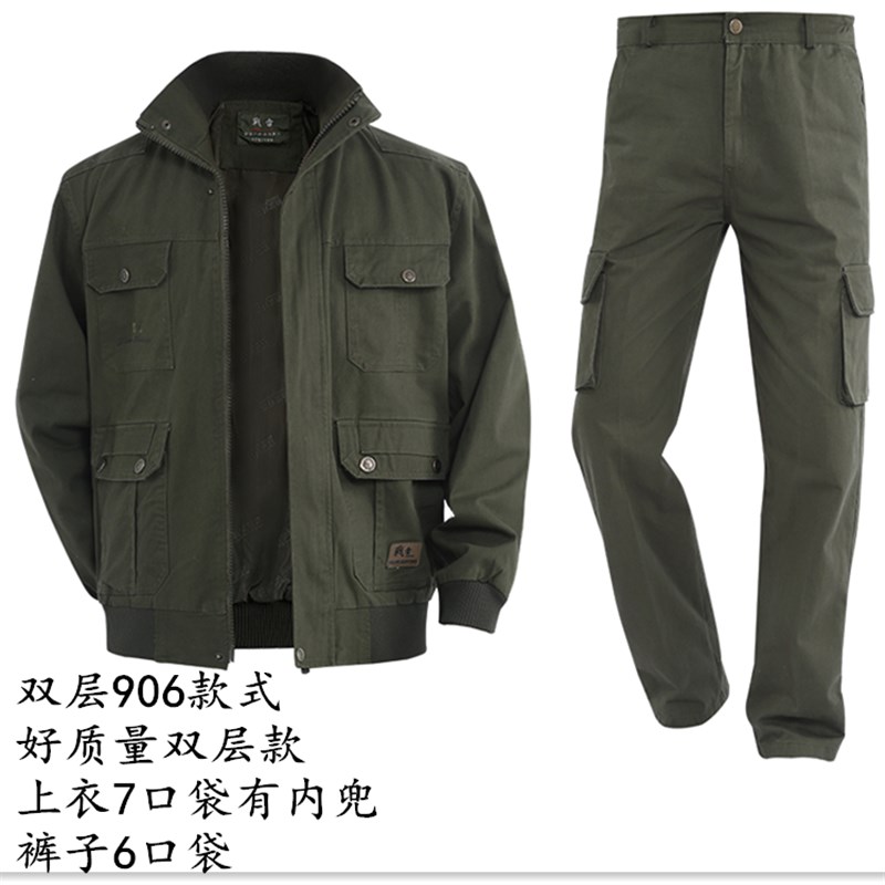 春秋季纯棉长袖工作服男电焊工作服套装男防烫耐磨汽修劳保服工装