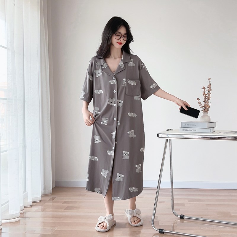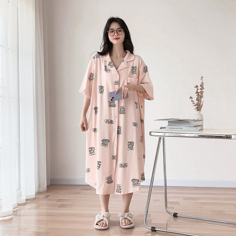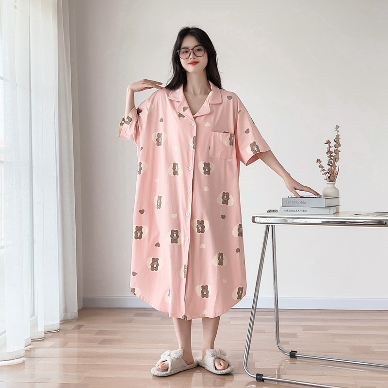 夏季薄款开衫大码睡裙女200斤针织棉短袖胖mm孕妇宽松睡衣家居服