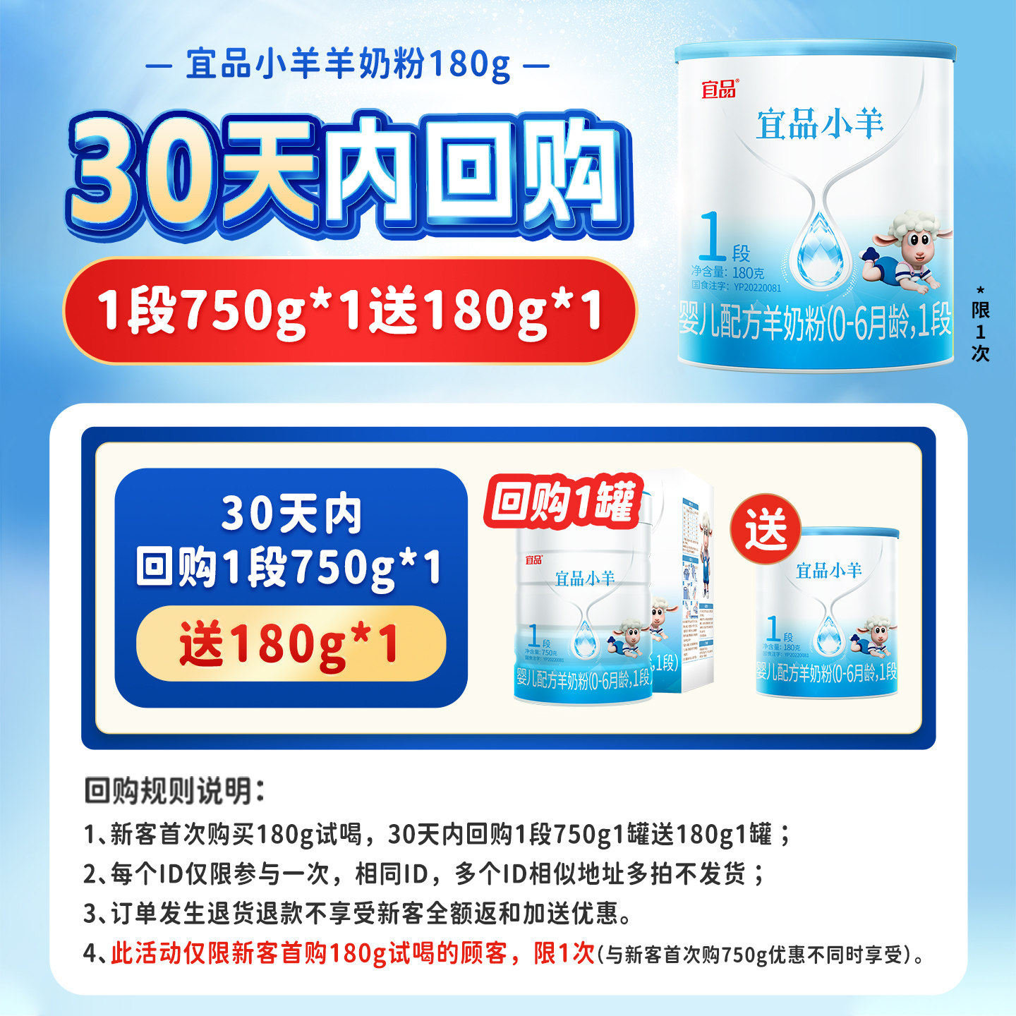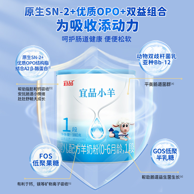 蓓康僖宜品小羊婴幼儿配方羊奶粉1段0-6个月新生宝宝180g试喝装