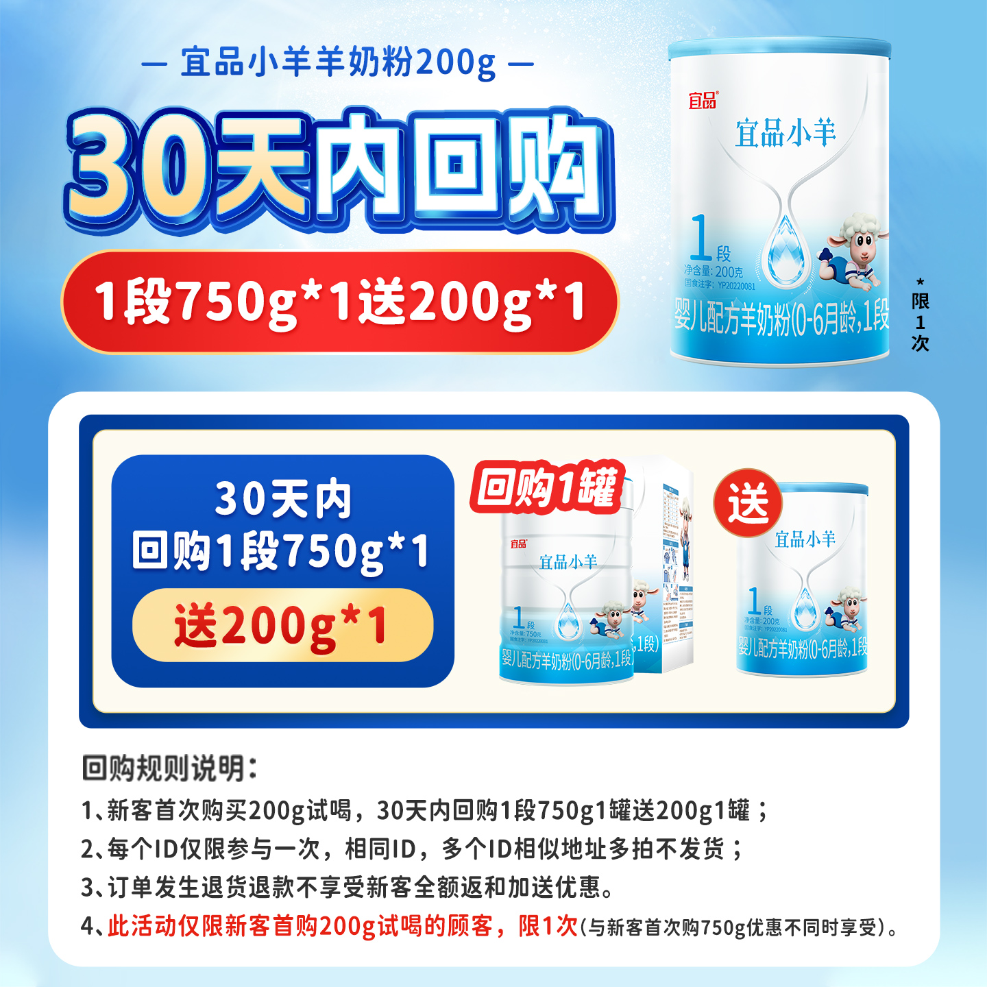 蓓康僖宜品小羊婴幼儿配方羊奶粉1段0-6个月新生宝宝200g试喝装