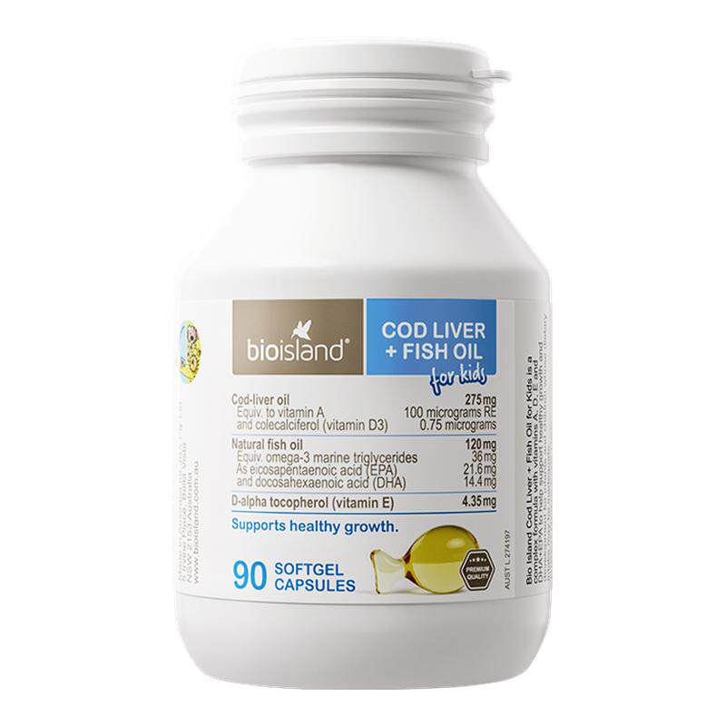 澳洲进口bioisland佰澳朗德婴幼儿童鳕鱼肝油胶囊3瓶装