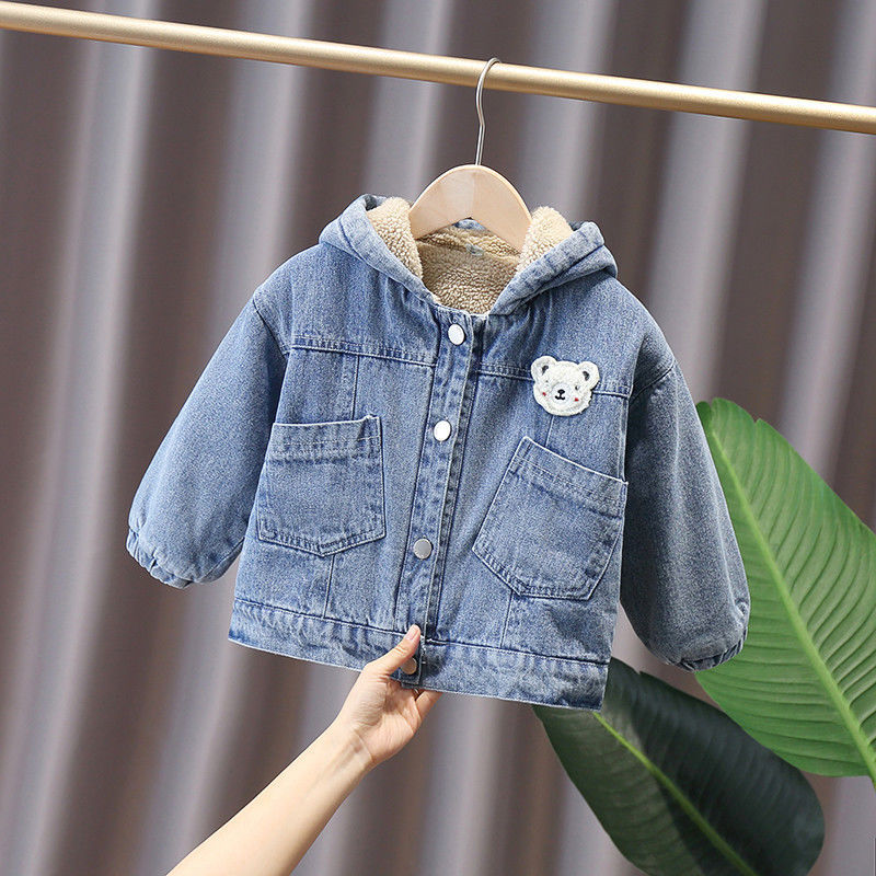 男童外套春秋加绒2025新款宝宝牛仔棉衣加厚洋气羊羔绒儿童冬装潮