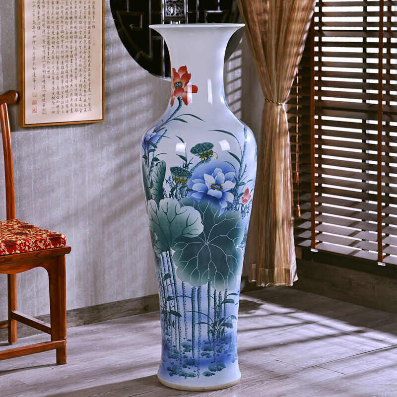 景德镇手绘连年有余陶瓷落地大花瓶客厅公司开业家居工艺送礼摆件