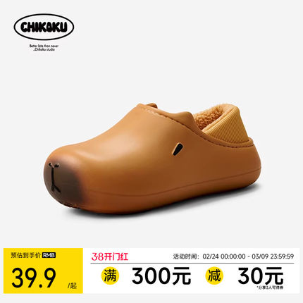 chikoku憨厚卡皮巴拉勃肯鞋加绒包跟棉拖鞋女冬季保暖家居防水男