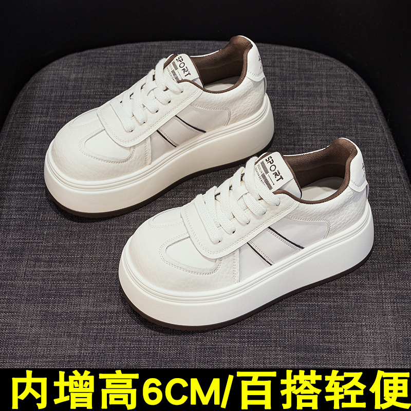 厚底板鞋女6cm舒适轻便圆头低帮2025秋冬新款百搭内增高小白鞋女