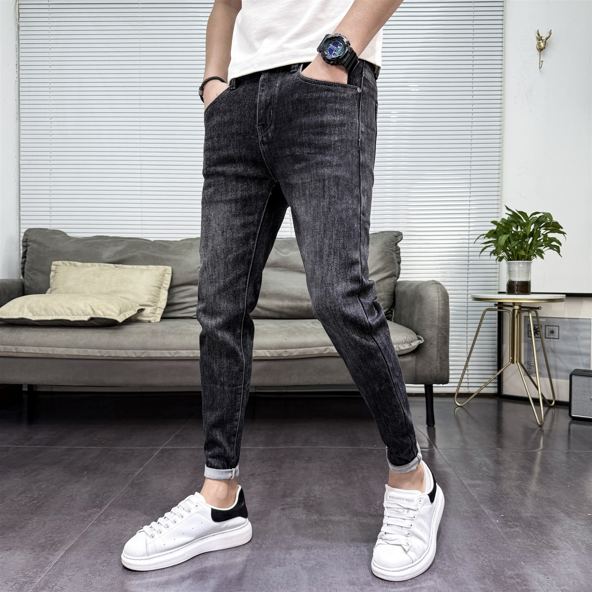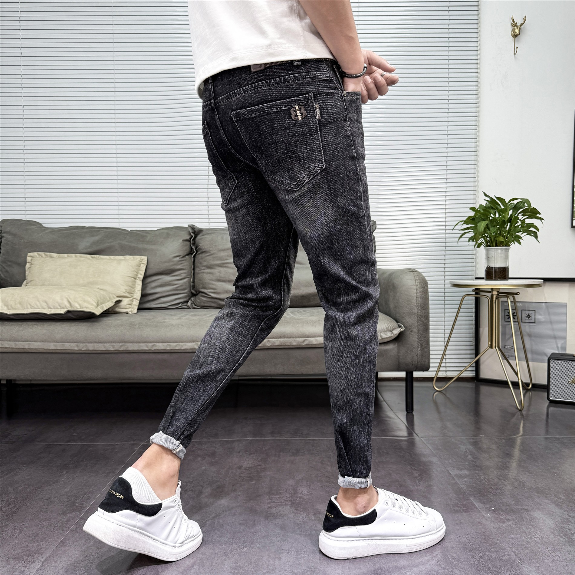 牛仔裤男黑灰色2025秋季新款韩版时尚潮流百搭修身小脚休闲长裤