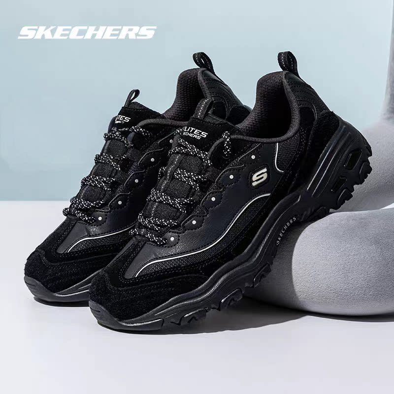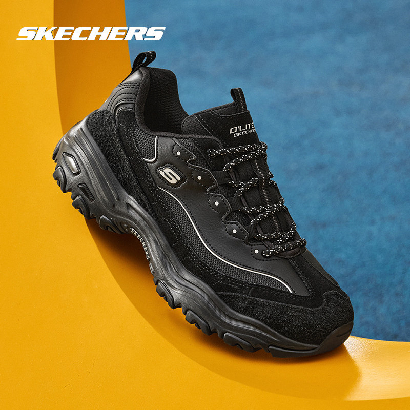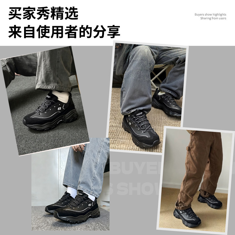 斯凯奇男鞋春季熊猫鞋增高老爹鞋运动鞋男士休闲鞋新款黑色运动鞋