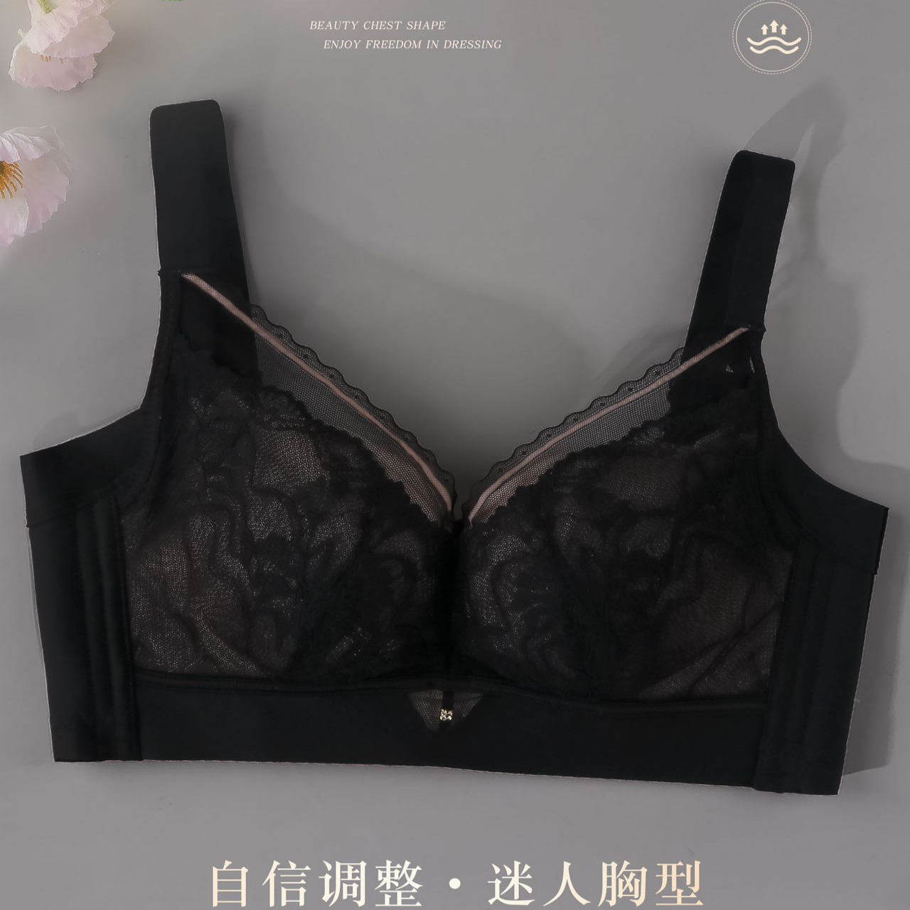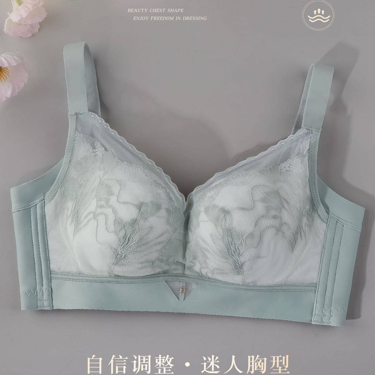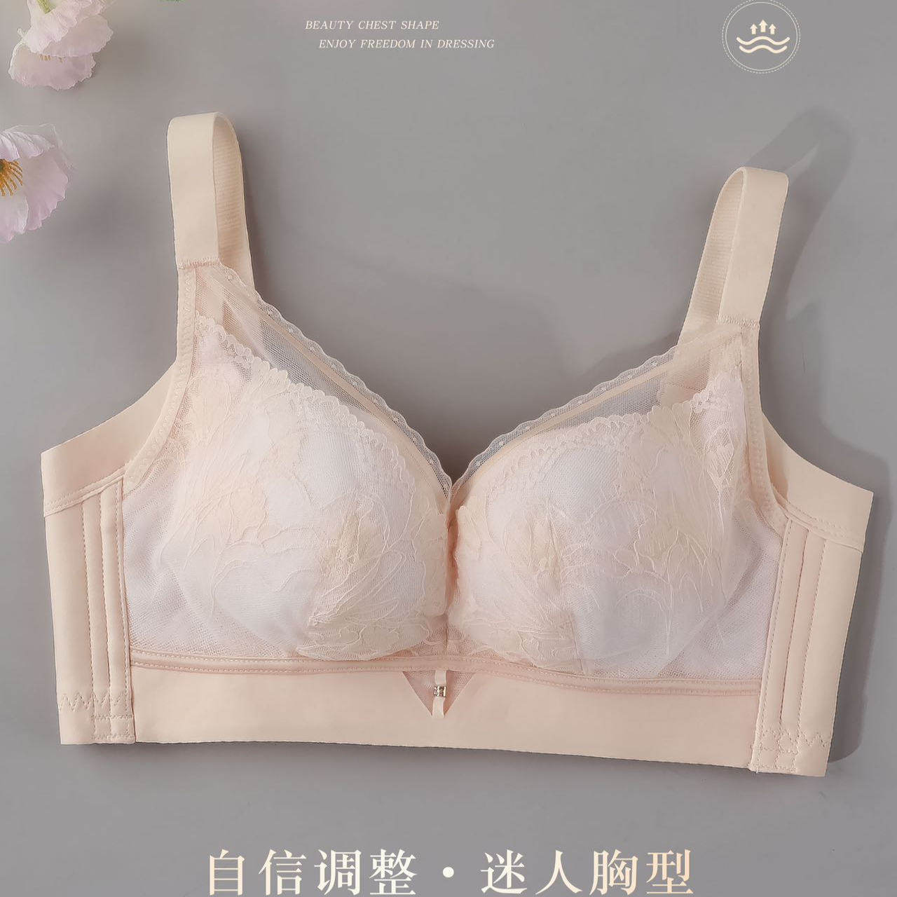 缔妒简小胸聚拢桑蚕丝收副乳文胸无钢圈蕾丝调整型内衣无钢圈薄款