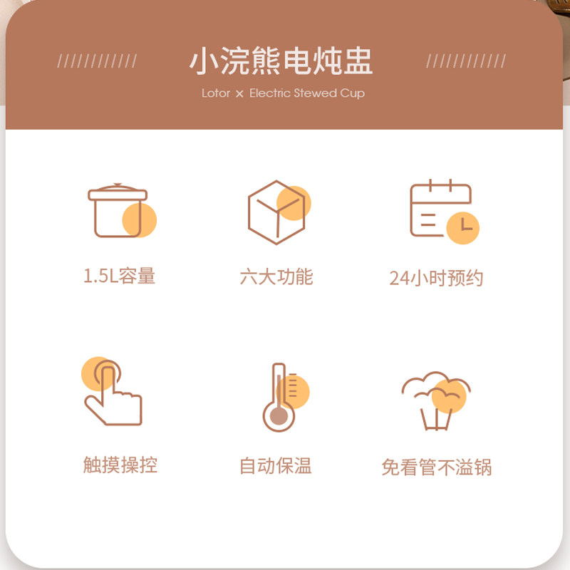 LOTORD1小浣熊电炖锅家用燕窝煲汤煮粥定时预约隔水炖盅小粥锅