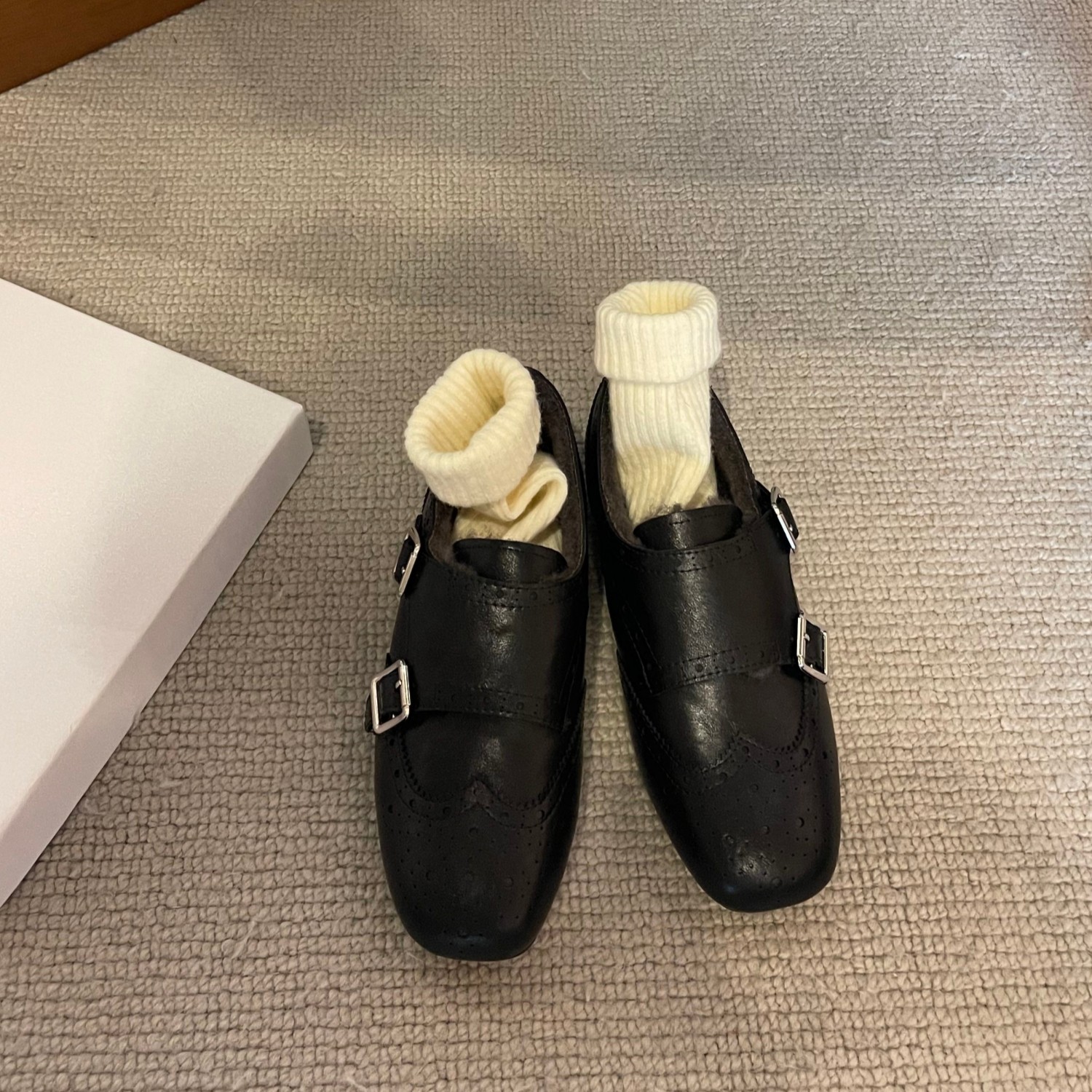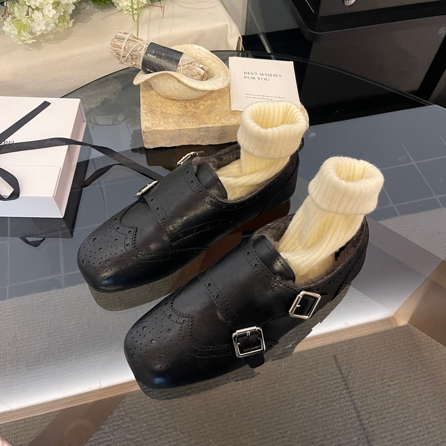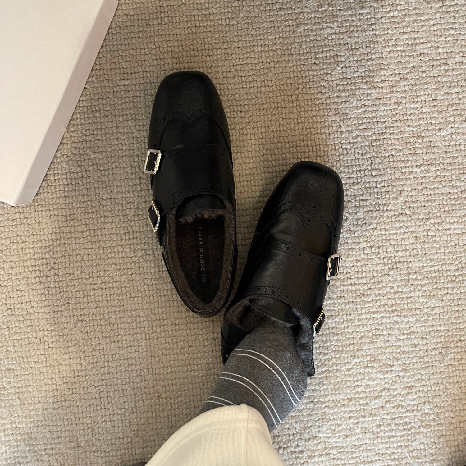 冬季加绒棉鞋英伦风布洛克鞋女2025超火平底小皮鞋方头雕花乐福鞋
