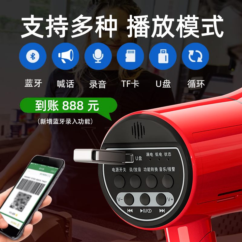 琅韵喊话器便携扬声扩音器手持户外摆地摊录音叫卖蓝牙喇叭大声公