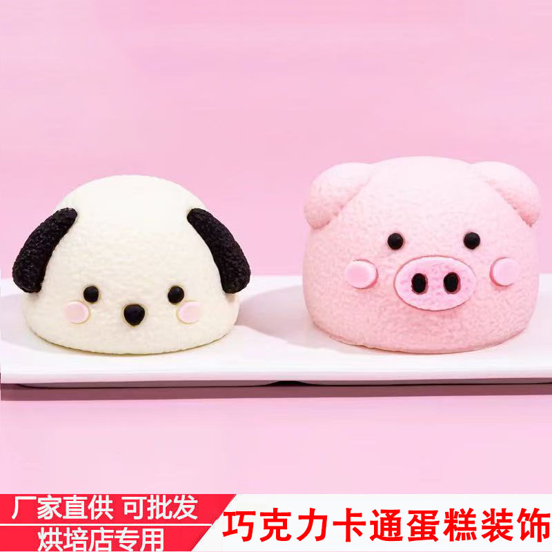 奶油小狗巧克力蛋糕装饰成品插件泰迪可爱小猪烘焙网红生日摆件