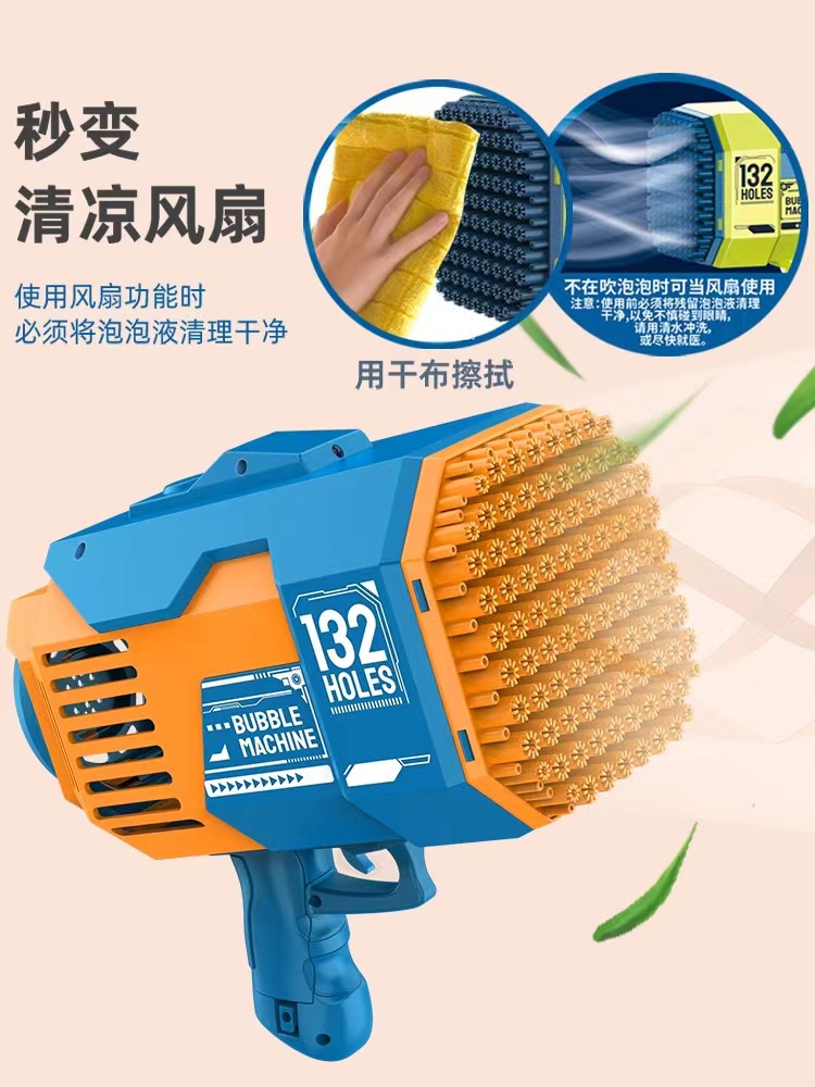 儿童新款粉色网红爆款132孔69孔火箭筒多孔电动泡泡机泡泡枪男女