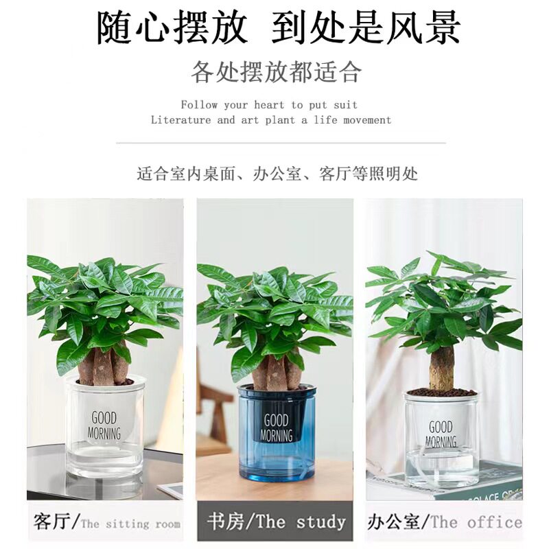发财树小盆栽办公室绿萝箩水培绿植花卉植物室内花文竹四季好水养