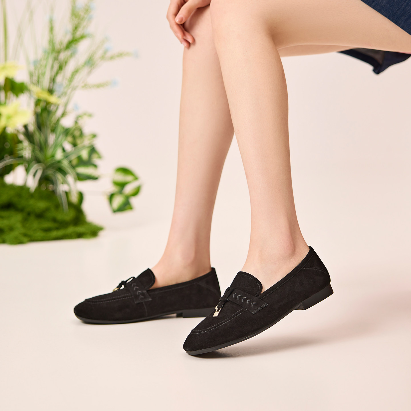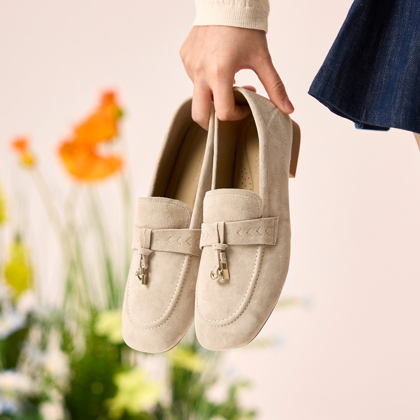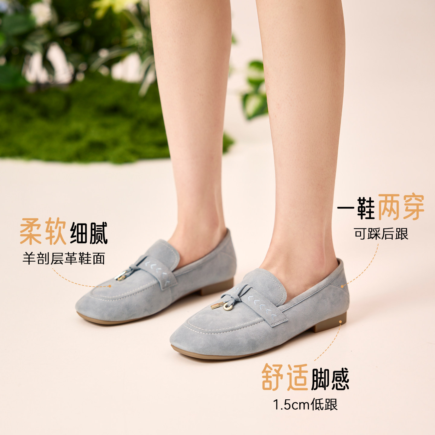 奥康 女鞋2026春季新款乐福鞋质感真皮绒面浅口单鞋两穿通勤平底
