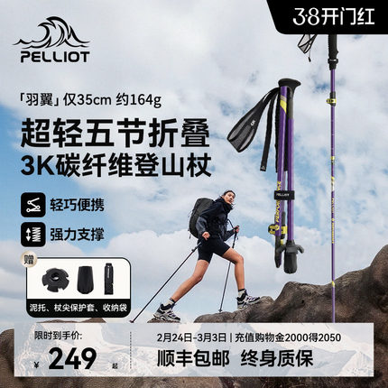 【羽翼】伯希和户外登山杖新款3K碳纤维折叠手杖轻便徒步爬山装备