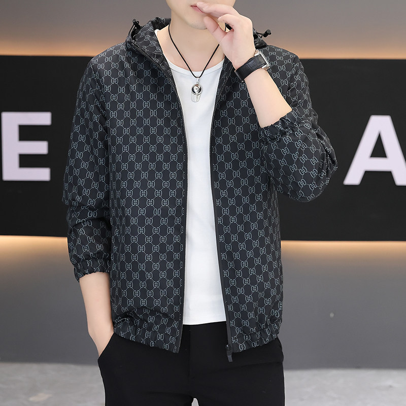 春秋男士夹克潮流帅气修身连帽长袖上衣青年时尚韩版休闲男装外套